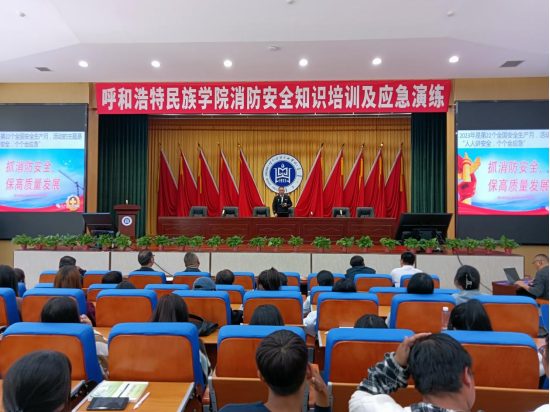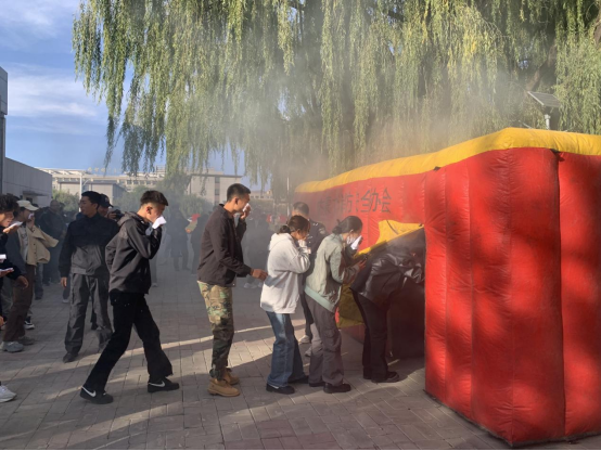 本次培训首先在学术报告厅举办,由内蒙古消防安全行业协会专家邹顺担任主讲,从落实消防安全责任出发,普及了安全警示、法律法规、防火防灾预防、灭火方法、应急逃生能力等安全知识。同时,通过PPT展示,条理清晰、深入浅出地讲解了一个个怵目惊心的真实事故。讲座结束后,在南食堂进行了消防应急逃生演练,师生通过安全通道有序撤离到指定位置,随后在报告厅东侧组织开展了灭火及模拟烟雾逃生帐篷演练。