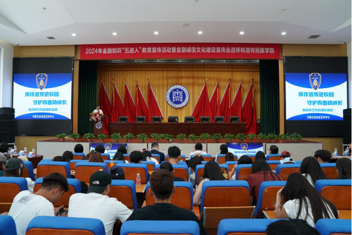 5月28日,由中国人民银行内蒙古自治区分行、内蒙古自治区公安厅反诈中心、国家金融监督管理总局呼和浩特赛罕监管支局、招商银行呼和浩特分行联合举办的“反诈宣传进校园 智慧金融”宣讲活动在米乐官网举行。招商银行呼和浩特分行党委委员、副行长张涛、MILE米乐集团党委委员副校长高喜天出席活动。米乐官网400余名师生参加活动。