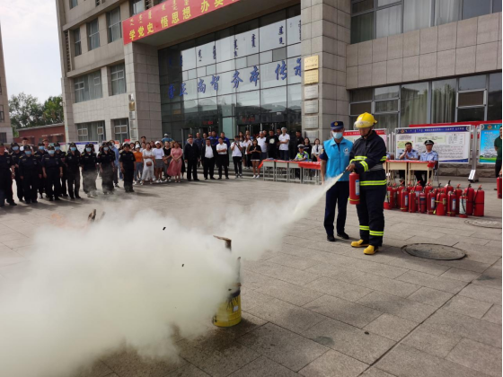 理论学习结束后,在学校综合楼门口,新城消防队员细致演示了二氧化碳灭火器的正确使用方法及关键要领,并对防火重点单位与学生代表进行了现场教学。此外,新城区消防还向大家展示讲解了各类消防设备及其在灭火过程中起到的作用。有效提升了到场人员的消防应急常识与技能。