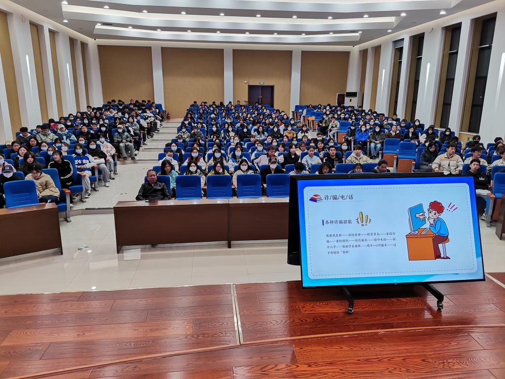 多丽娜警官讲解了近期我市高校发生的多起刷单返利电信诈骗案例,如何防范电信网络诈骗、电话诈骗、校园网贷等方面的危害和防范措施。郭明君副处长通过实际案例讲解了国家安全、交通安全、消防安全等方面的安全知识,并结合校园周边环境的治安状况,强调了安全的重要性,希望同学们从自身做起,共同维护校园安全环境。最后引导同学们下载了“国家防诈中心APP”。