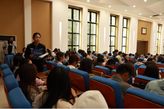 讲座中,李检察官结合自身办案经历,围绕新生群体易面临的安全风险展开细致深刻的讲解。针对当前社会关注度较高的性侵类违法犯罪问题,李检察官聚焦“反性侵案例”,详细分析了性侵案件的常见诱因、高发场景及受害者心理特点,进一步传授了“保持警惕、明确拒绝、及时求助”的防性侵应对技巧,引导新生树立正确的性别边界意识。随后李检察官通过展示因琐事引发的校园冲突案例,揭示了“激情犯罪”的突发性、危害性,并警示新生在面对矛盾纠纷时,要保持理性克制,通过沟通协商、寻求学校帮助等合法途径解决问题。结合近年来高发的“校园贷”“刷单返利”“冒充客服退款”“虚假中奖”等诈骗类型,李检察官通过播放反诈宣传视频、展示诈骗聊天记录截图等方式,还原了诈骗分子的作案手法与话术陷阱。同时,还分享了识别诈骗、防范诈骗的实用技巧,提醒新生一旦遭遇疑似诈骗情况,要第一时间保存证据并向公安机关报案,最大限度降低财产损失。讲座互动环节,新生们积极提问,李检察官耐心解答,用通俗易懂的语言将法律知识与实际场景结合,让新生在互动中进一步强化安全意识与法治观念。