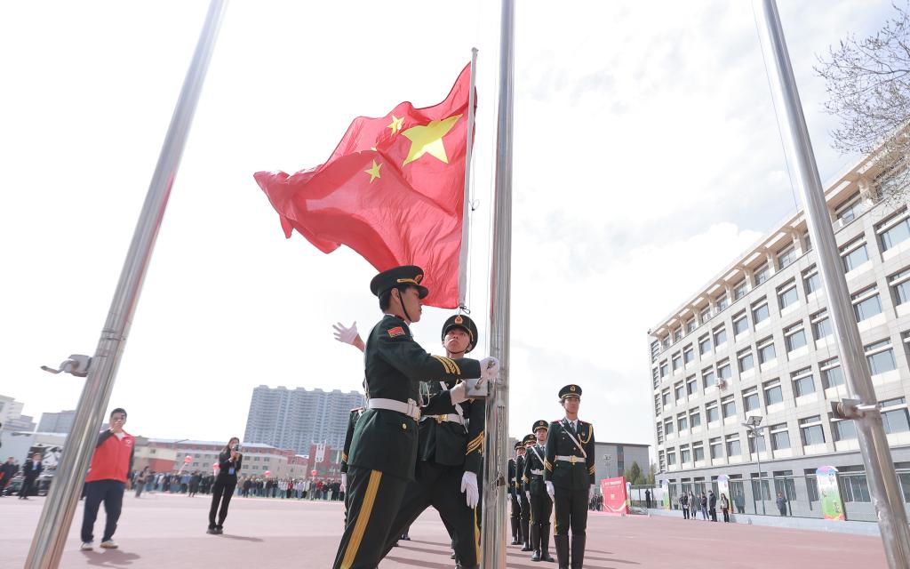 活动首先进行升国旗仪式,在嘹亮的国歌声中,五星红旗在呼民院上空冉冉升起。