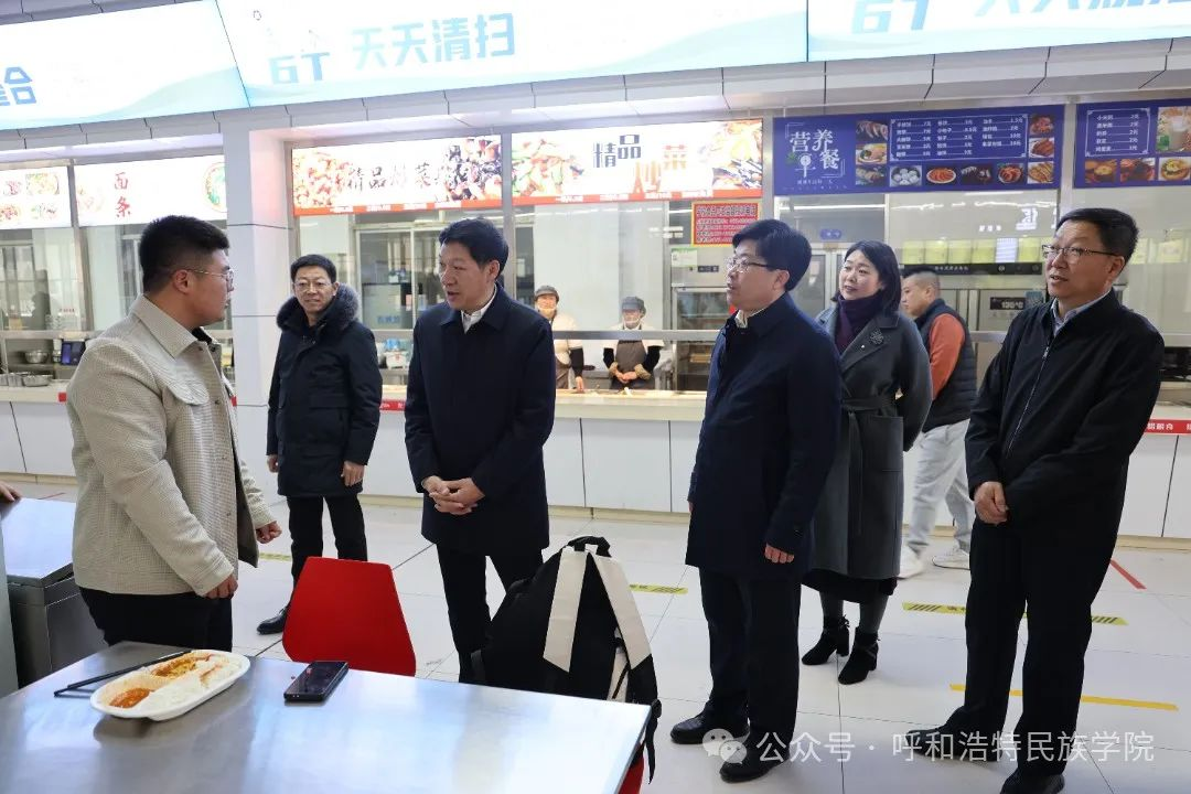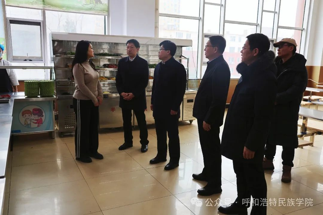 校园安全是一切工作的基础和前提,为进一步做好新学期校园安全管理工作,消除潜在安全隐患,把校园安全工作做实做细,切实筑牢校园安全防线。2月26日,校党委书记刘九万,党委副书记、校长韩伟新,党委副书记格根哈斯,党委委员、副校长高喜天,党委委员、副校长刘瑞鸿,党委委员、副校长额尔敦布和等校领导一行对校园内重点场所进行了安全督导检查。