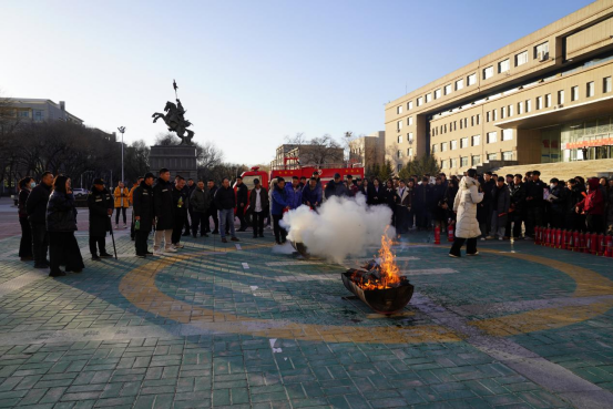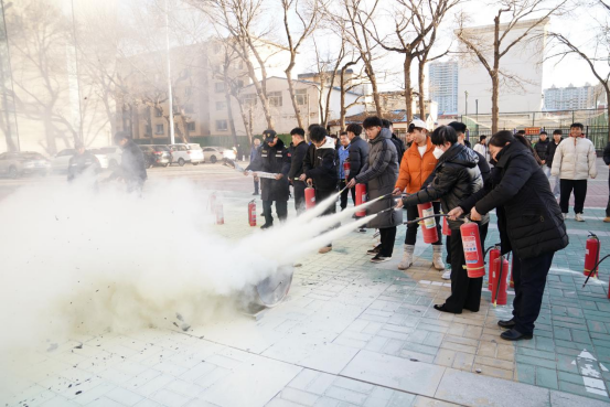 其次,在都林楼前广场进行灭火应急演练,现场模拟初级火灾现场,周志远示范灭火器正确操作步骤,教职工们积极参与灭火过程,通过演练更深刻地掌握了灭火器的正确使用方法。