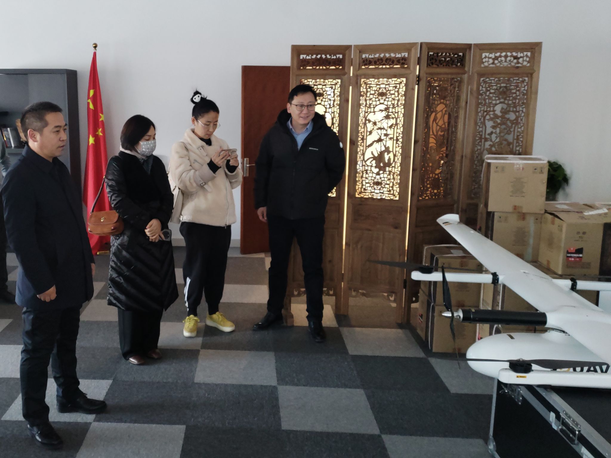 邦飞科技是集智能无人飞行、执飞驾考培训等相关业务于一身的科技公司。学院一行首先参观了公司主营业务的设备展示,了解航拍领域的动态前沿,随后院企双方就各自意向开展座谈交流。