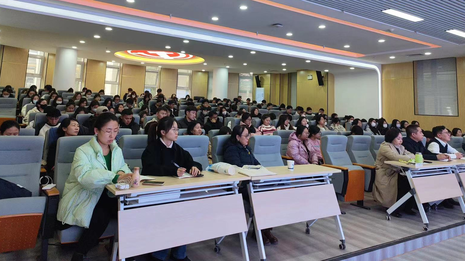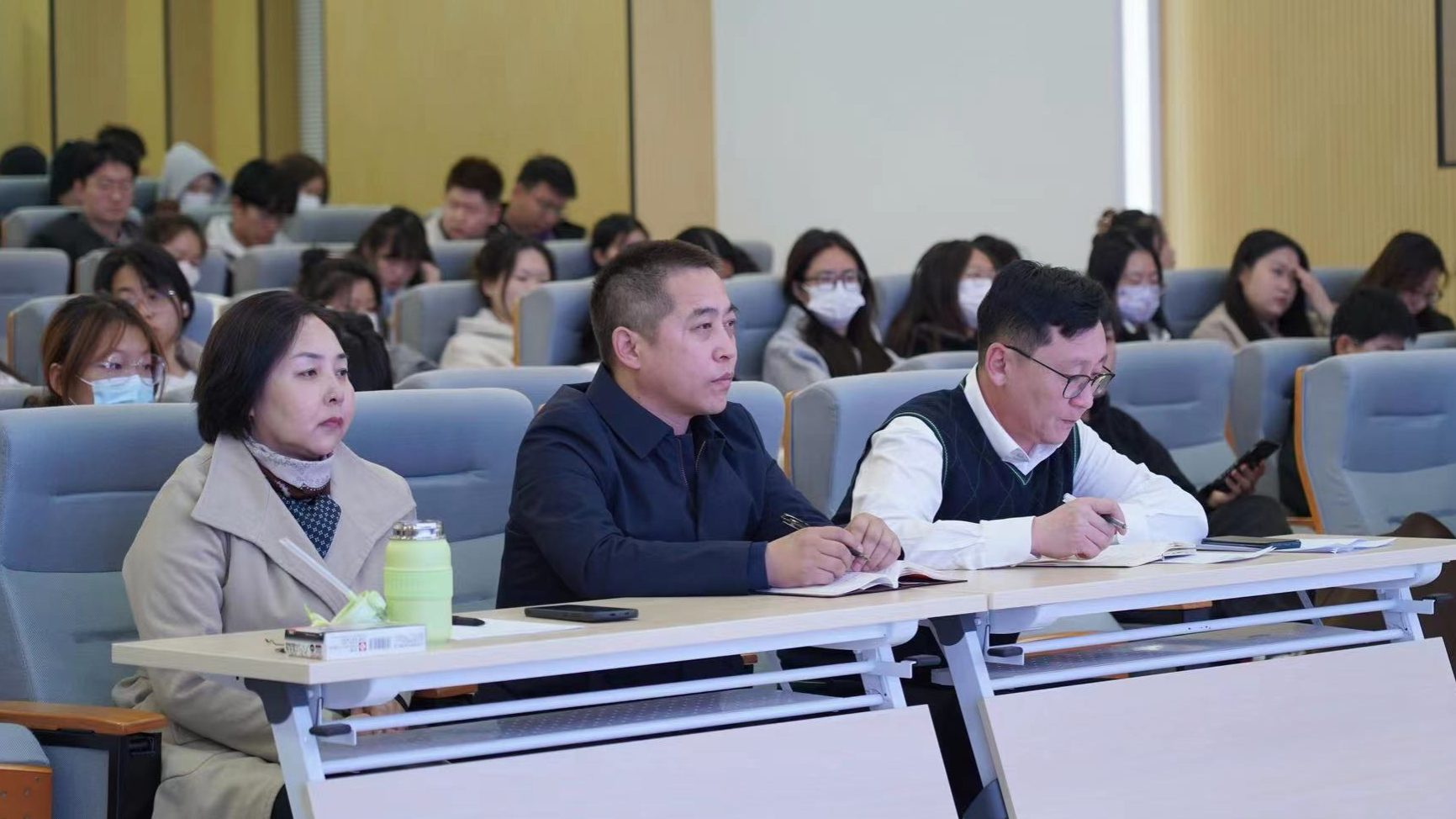 活动由新闻传媒学院院长额尔敦毕力格主持,党总支书记包玉柱携全院教师和新闻学专业学生参加。