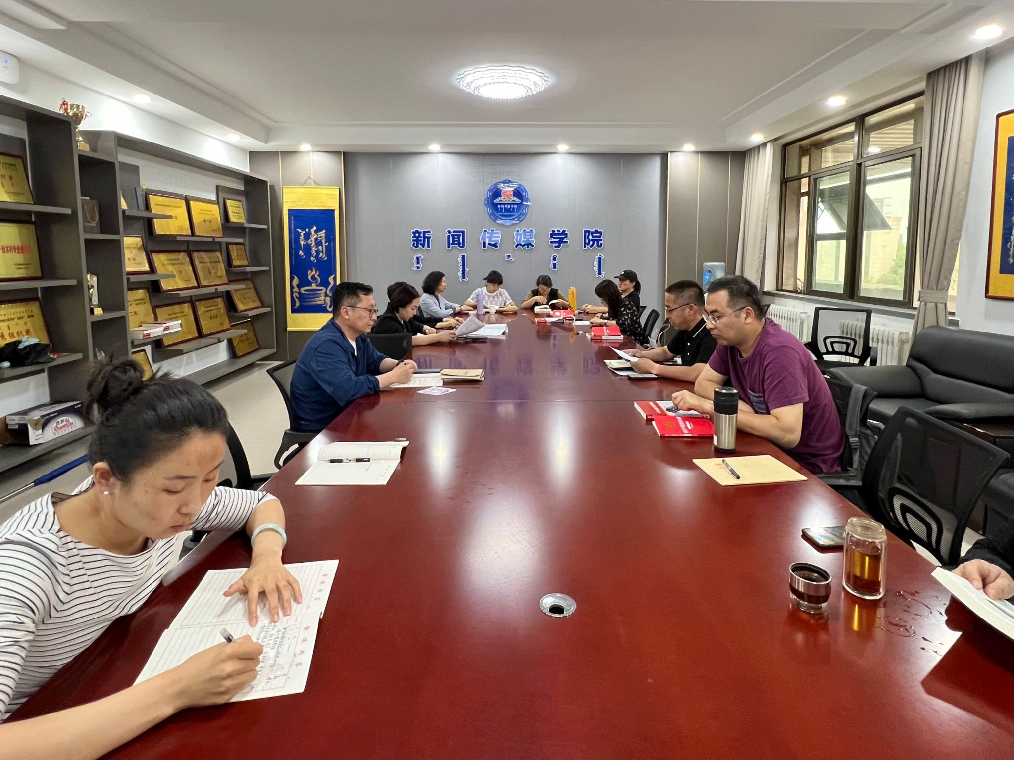 6月6日,新闻传媒学院在都林楼519会议室召开毕业工作及期末工作推进会,学院党总支书记包玉柱主持,全体教职工参加。