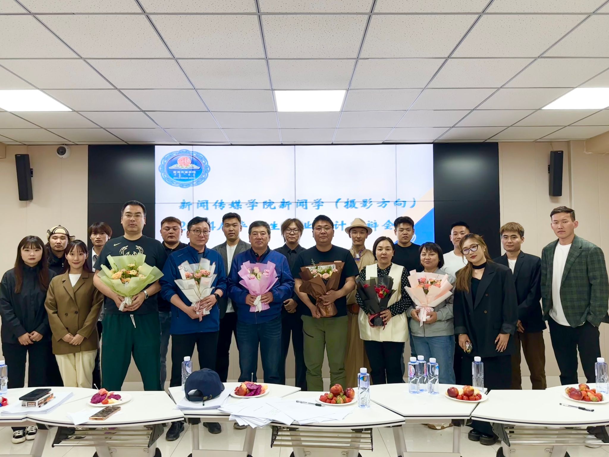 同一天,新闻学(摄影方向)专业的13名学生也展示了他们的26部作品,由额尔敦毕力格院长指导,那木日同学创作的《青城.宴》被评为优秀毕业作品。