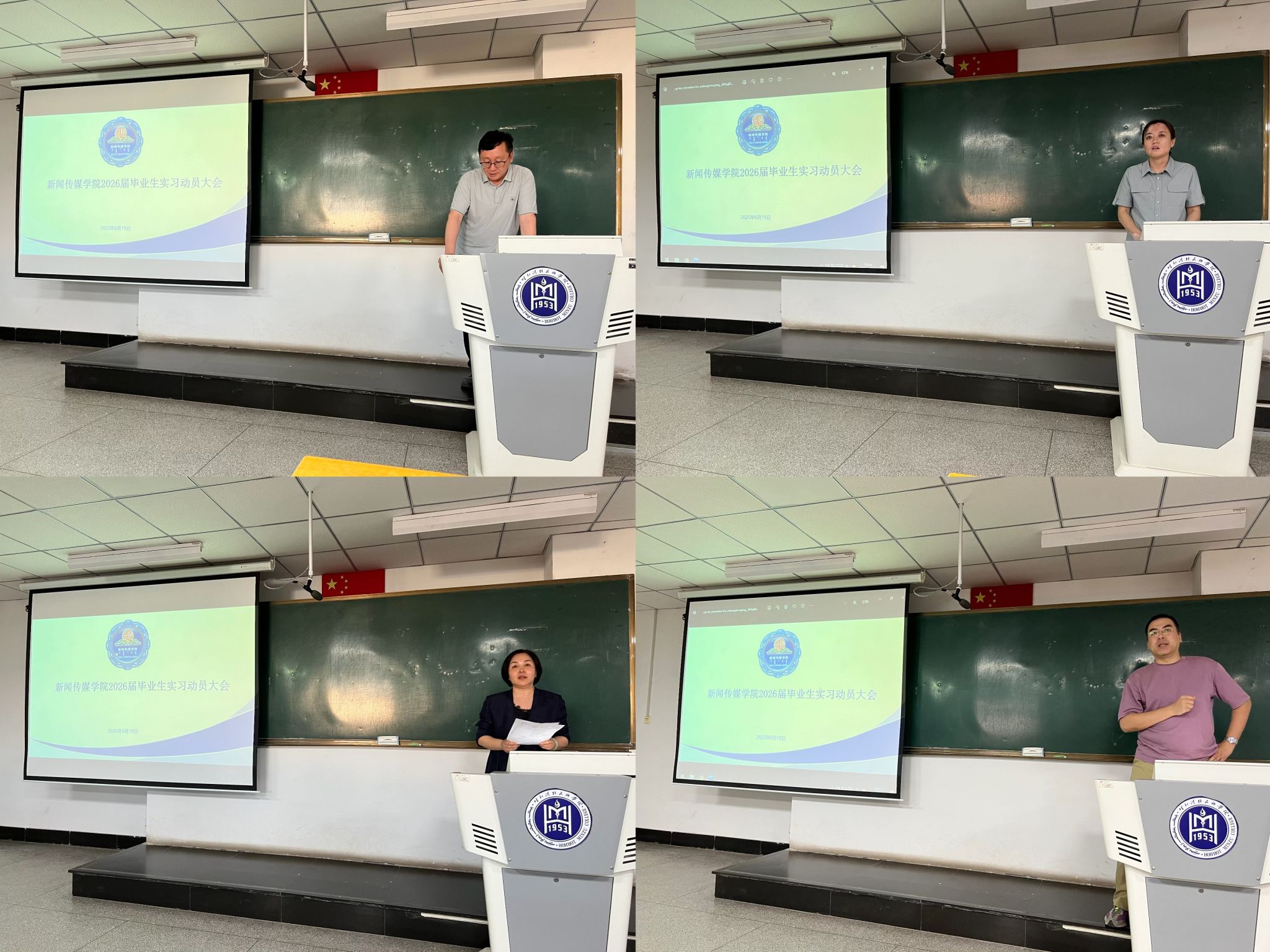 为了确保2026届毕业生实习工作顺利进行,6月19日,新闻传媒学院于尚智楼213教室举办2026届毕业生实习动员大会。新闻传媒学院院长额尔敦毕力格、党总支副书记王丽、副院长安迎春、教学科研办公室主任阿特尔、班主任及2022级全体学生参加,大会由阿特尔主持。