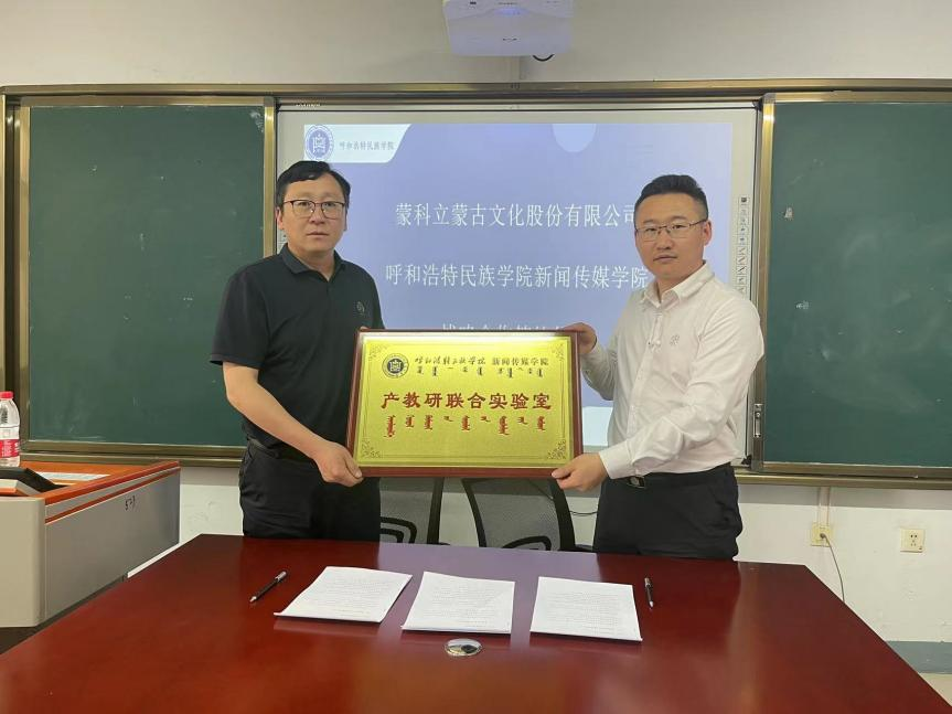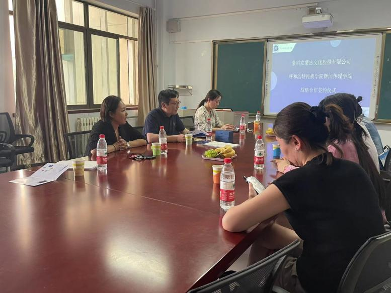 6月9日,新闻传媒学院在都林楼423会议室与内蒙古蒙科立蒙古文化股份有限公司签约共建产教研联合实验室。蒙科立公司常务副总斯钦图力古尔一行四人与学院领导班子及学工办负责人出席会议。