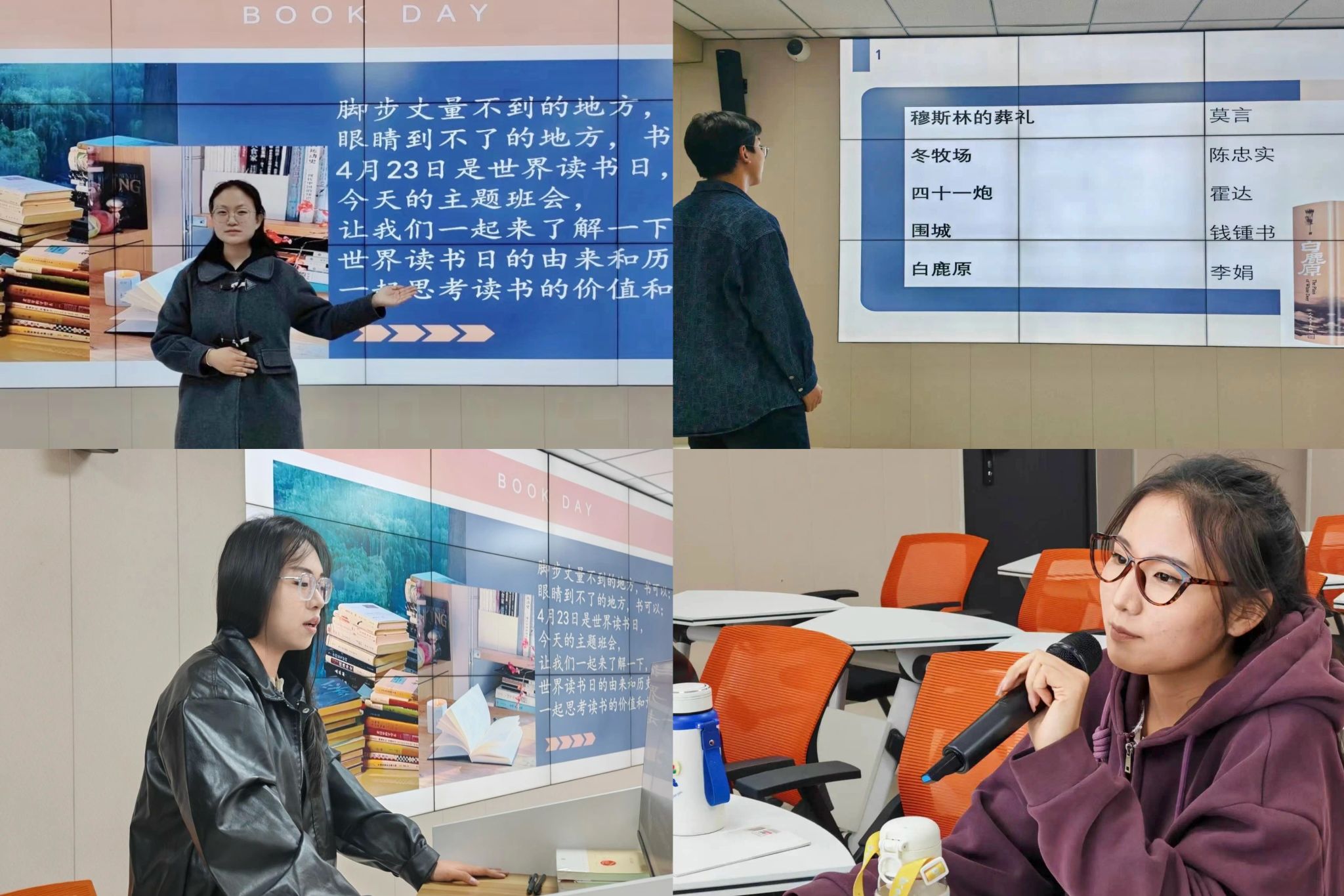 活动伊始,主持人详细介绍了世界读书日的由来及意义,让同学们了解到阅读对于个人的重要性。活动过程中,同学们积极讨论,相互分享读书感悟。“读书最大的优点就在于它能令人开阔眼界和增长见识,让你变得和别人不一样,让你能找到属于自己的那个精神世界”,“前人栽树,后人乘凉,我们可以从书中学习前辈们的经验,以此来提升自己”,这些观点引发了同学们的共鸣,大家纷纷表示读书不仅仅是为了获取知识,更是一种精神寄托和成长的方式。