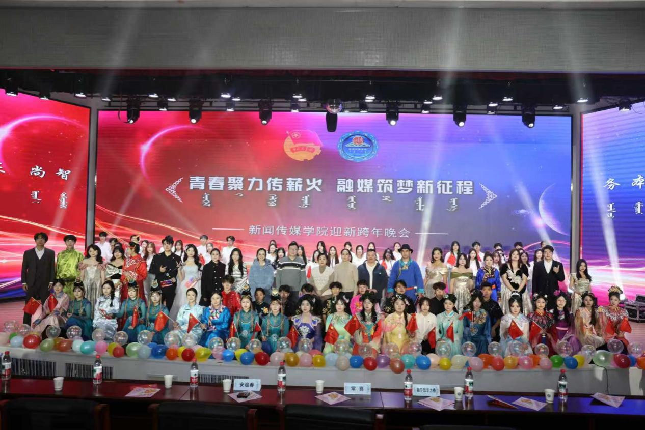 2025年12月25日晚,新闻传媒学院“青春聚力传薪火 融媒筑梦新征程”迎新跨年晚会在米乐官网铸牢馆二楼报告厅隆重举行。党委学生工作部部长常喜,新闻传媒学院院长额尔敦毕力格、副院长安迎春、师生代表共计500余人观看晚会。整场晚会灯光璀璨、掌声雷动,师生们欢聚一堂,共同见证这场属于新闻传媒学子的艺术盛会。