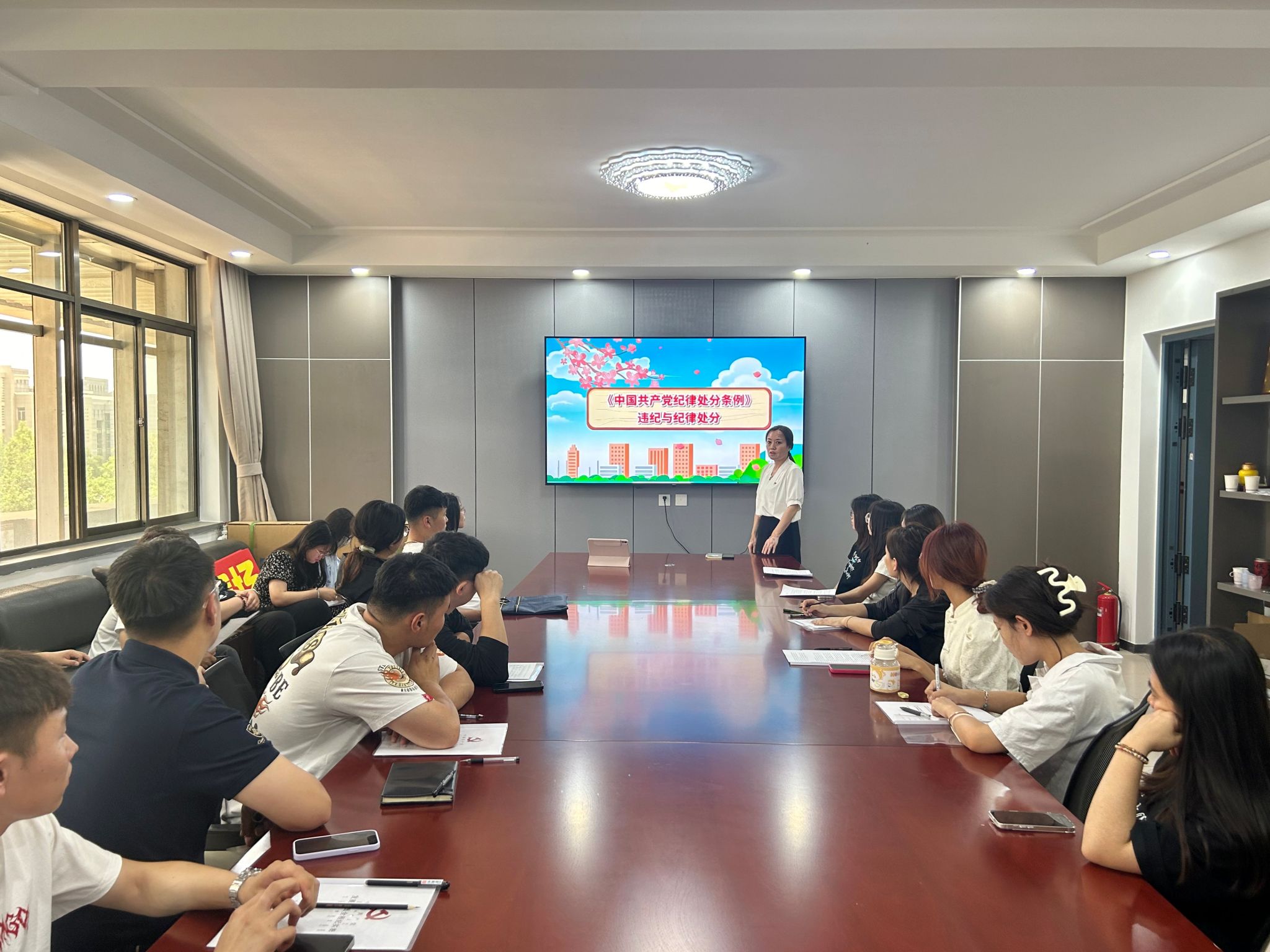 6月17日,新闻传媒学院学生党支部书记王丽为学生党员们带来了一堂关于《中国共产党纪律处分条例》的专题党课,旨在提升学生党员对党的纪律规定的认知和理解,增强其党性修养和纪律意识。