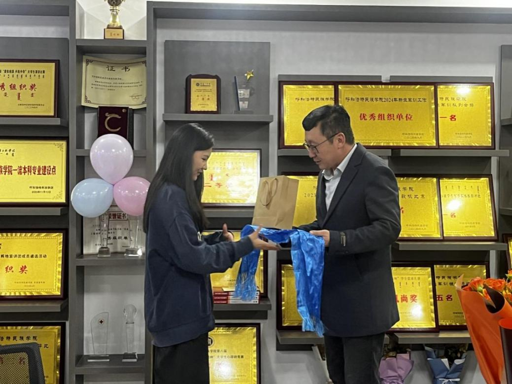 仪式上,院长额尔敦毕力格对白塔娜教授在学院学科建设、人才培养所做出的卓越贡献表示诚挚感谢。白塔娜教授分享了与学院共度的难忘时光,对学院精心策划的荣休仪式表达感谢,她深情回顾了在学院度过的三十四载春秋,言语间流露出对学校的深厚情感。同时,她向新入职的教师赠送了暖心礼物,并致以诚挚的祝福。