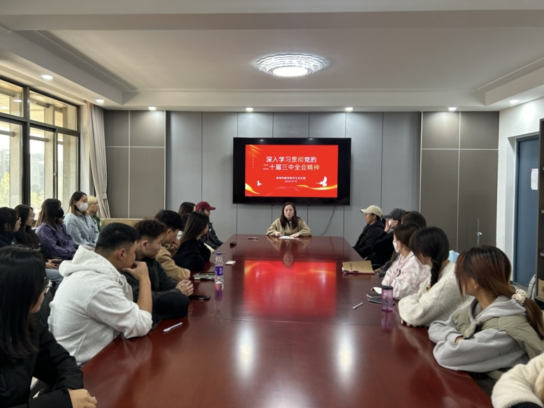 10月10日,新闻传媒学院于都林楼519会议室召开“深入学习贯彻党的二十届三中全会精神”专题会议,学院全体学生党员参加,党总支副书记王丽主持。