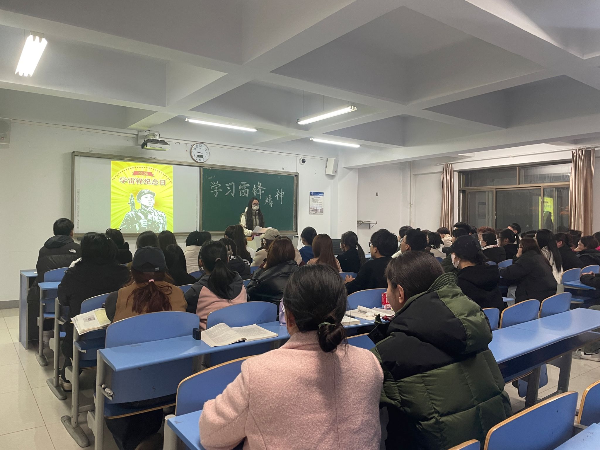 3月5日晚,新闻传媒学院组织大一各班级开展“学习雷锋精神”主题活动。新闻传媒学院学生会组织各班同学,召开相关主题班会,在会议上,学生会代表娜仁高娃阐明了雷锋精神的重要价值,同时又讲解了学习雷锋精神的时代意义,在主题班会的最后,又呼吁同学们要努力学习雷锋精神,并将雷锋精神的内涵贯彻到日常的学习生活中。