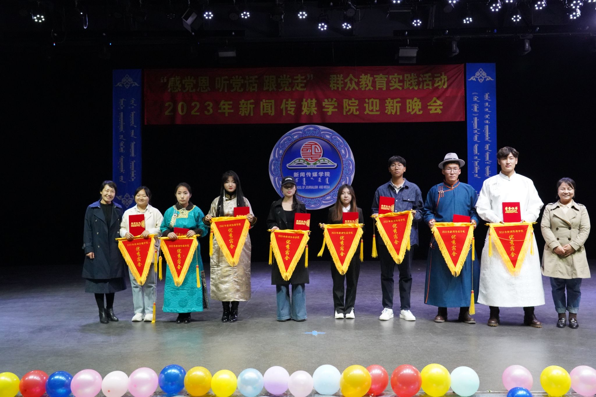 迎新晚会由伊德日、阿拉木斯等人带来的《锡林郭勒快马之歌》中拉开了帷幕。接下来进行了优秀班集体、三好学生等颁奖仪式。