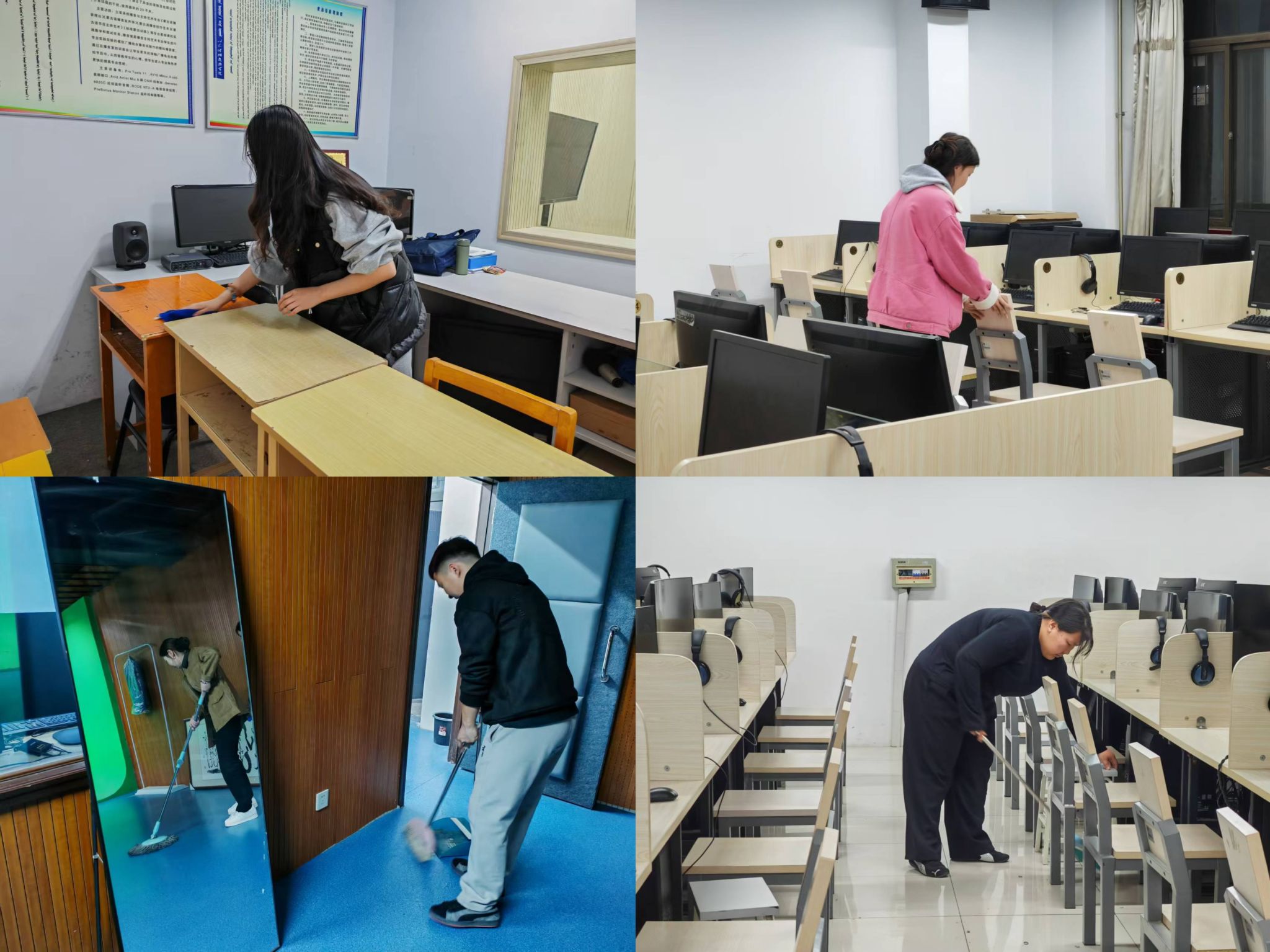 3月18日,新闻传媒学院组织大一各班开展劳动教育活动,对学院专用教室、实训场所等进行了全面清扫。 活动中,学生们分工协作,认真擦拭桌椅、整理设备、清扫地面,以实际行动美化学习环境。通过实践,同学们不仅提升了劳动技能,更增强了团队协作意识与责任感。大家纷纷表示,劳动教育让自身深刻体会到“劳动最光荣”的意义,未来将以更积极的态度投入学习和集体事务中。 劳动教育是人才培养的重要环节,学院将持续开展此类活动,引导学生树立正确的劳动观,弘扬踏实肯干的优良作风,助力学生全面发展。