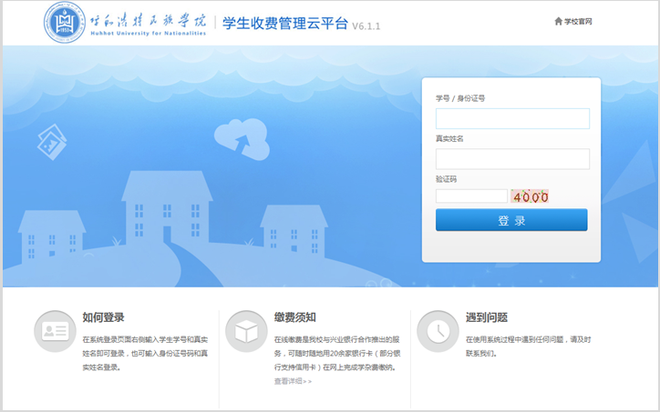 第1步: 使用浏览器(建议使用IE8.0或更高)登陆MILE米乐集团官方网站主页(地址为:http:/,点击 “学生缴费系统”(链接位于网站首页右下角)可打开登陆窗口。