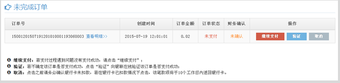 注:缴费未成功,可从“未完成订单中查看”(见图八),并继续完成支付。