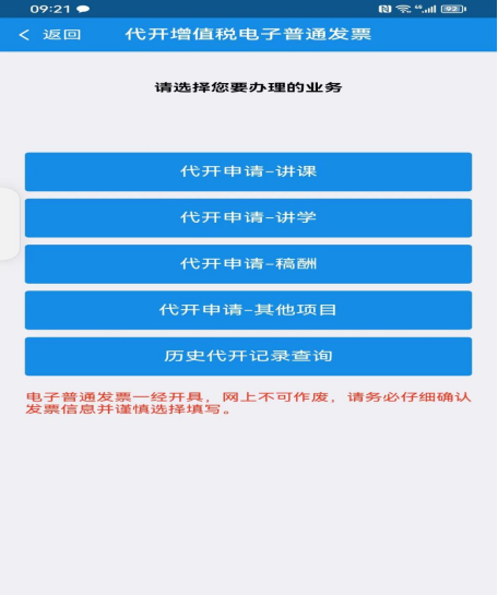 6.选择“历史代开记录查询”下载发票