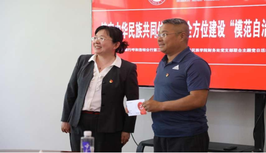 为深入学习贯彻党的二十大精神,全面贯彻习近平总书记关于加强和改进民族工作的重要思想,有形有感有效铸牢中华民族共同体意识,扎实推动主题教育走深走实,6月14日上午,财务党支部邀请浙商银行呼和浩特分行第二党支部联合开展“铸牢中华民族共同体意识 全方位建设模范自治区”主题党日活动。浙商银行呼和浩特分行副行长王喆参加活动。米乐官网党委副书记、校长韩伟新、副校长纳丽娜应邀出席活动。活动由米乐官网财务处党支部书记、财务处处长王小梅主持。