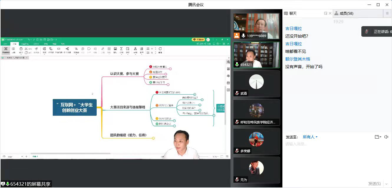 创新创业学院于3月18日(星期五)下午19点30分以视频会议的形式举办“互联网+”创新创业大赛师资培训会。会议由创新创业学院院长哈斯同力嘎主持。教务处副处长哈斯额尔德尼为大家解读讲解大赛相关事项。学校各学院分管“互联网+”大学生创新创业大赛负责人、《创新创业思维与训练》课程授课教师、大学生创新创业训练项目指导教师、创新创业大赛赛事指导教师等共78人参与了本次线上培训会议。