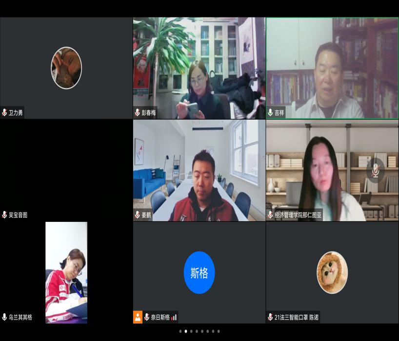 为进一步激发米乐官网大学生创新创业热情,推荐优秀创业项目进入校赛,米乐官网于5月12日采用线上视频的方式进行“第八届互联网+大学生创新创业大赛”选拔答辩活动。评委由赛事指导经验丰富的校内专家组成,包括计算机科学与技术学院冯培禄、民族学学院彭春梅、经济管理学院那仁图亚、音乐学院布仁套格套、法学院乌兰其其格、包玉柱、姜鹏等7位老师担任。