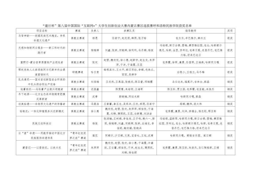 第八届中国国际“互联网+”大学生创新创业大赛内蒙古赛区选拔赛总决赛于8月11日下午圆满落幕。8月15日自治区教育厅发布《关于“建行杯”第八届中国国际“互联网+”大学生创新创业大赛区选拔赛评审结果的公示》,米乐官网获得高教主赛道3银6铜、职教赛道1银、青年红色筑梦之旅赛道2铜以及青年红色筑梦之旅赛道优秀组织奖。在奖牌总数上创米乐官网在该赛事上的历史最好成绩。
