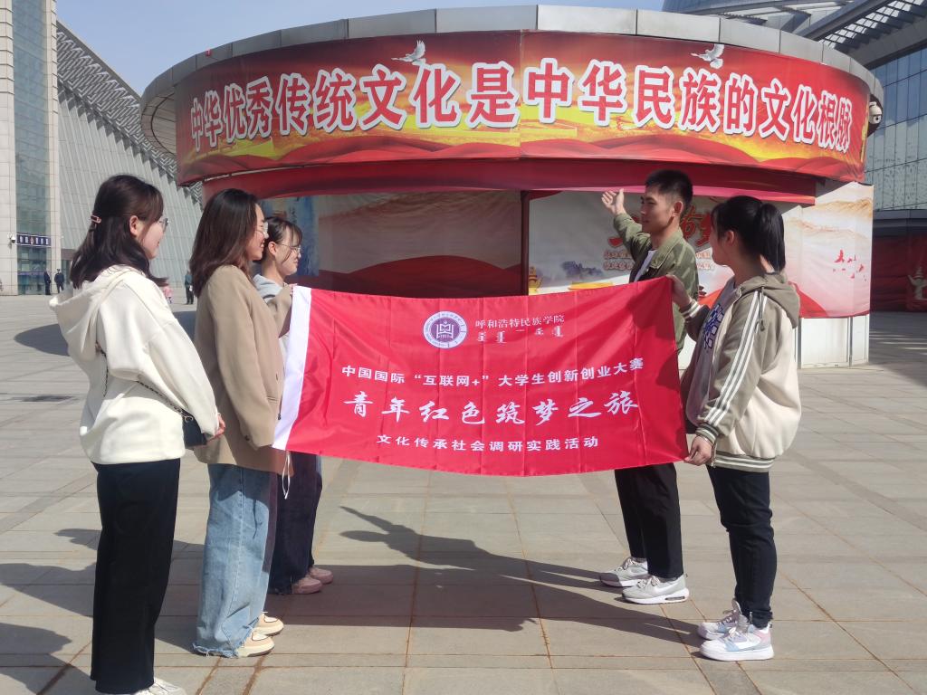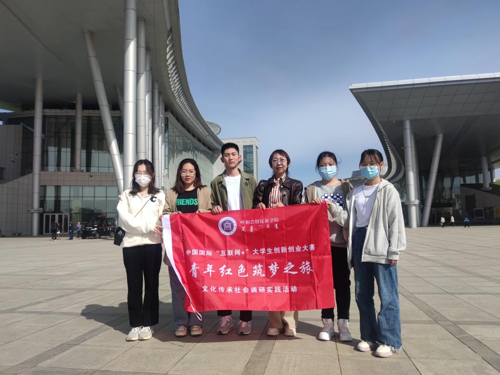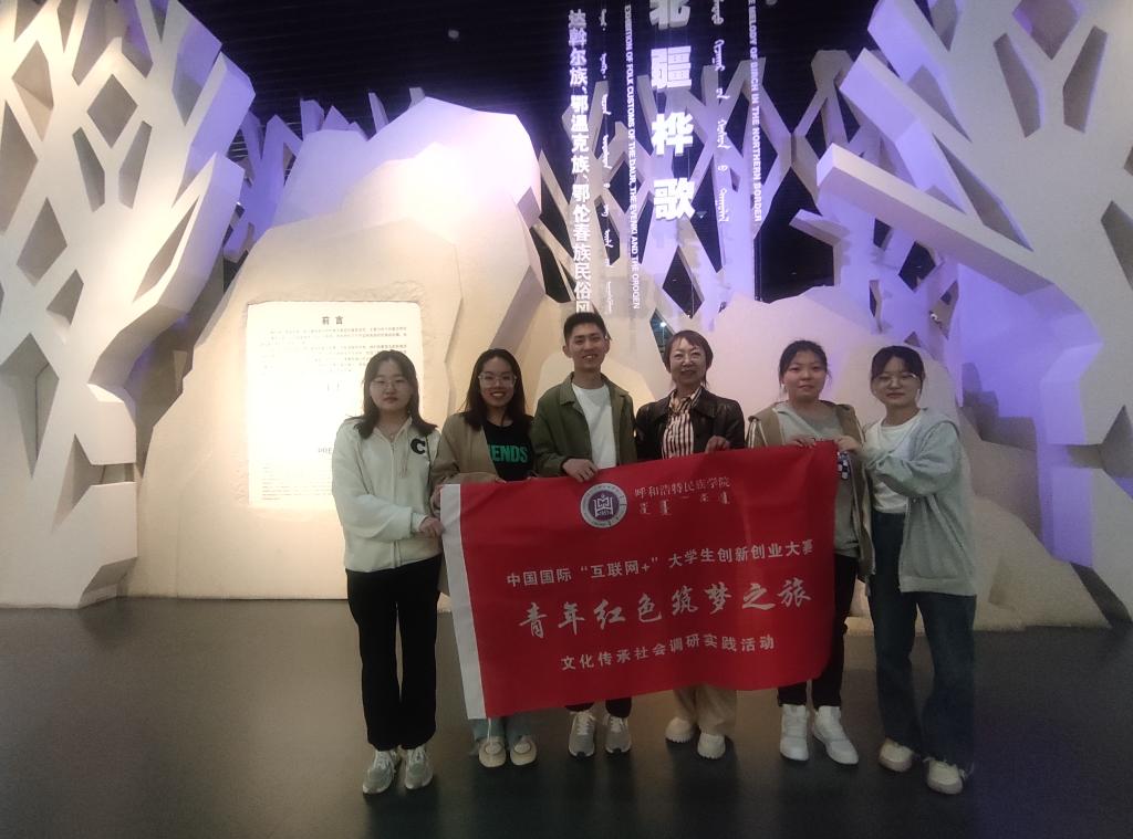 传承红色基因,接受思想洗礼,了解国情民情,传承中华民族传统文化,是“红旅”始终不变的底色。为深入贯彻落实习近平总书记给第三届中国“互联网+”大学生创新创业大赛“青年红色筑梦之旅”大学生重要回信精神,提升大学生创新创业能力,加快培养创新创业人才,纵深推进大众创业万众创新,4月16日上午,米乐官网大学生创新创业团队“民艺承袭”项目团队一行6人在创新创业学院实训部主任多荣娜带领下,赴内蒙古博物院开展“青年红色筑梦之旅”文化传承调研社会实践活动。