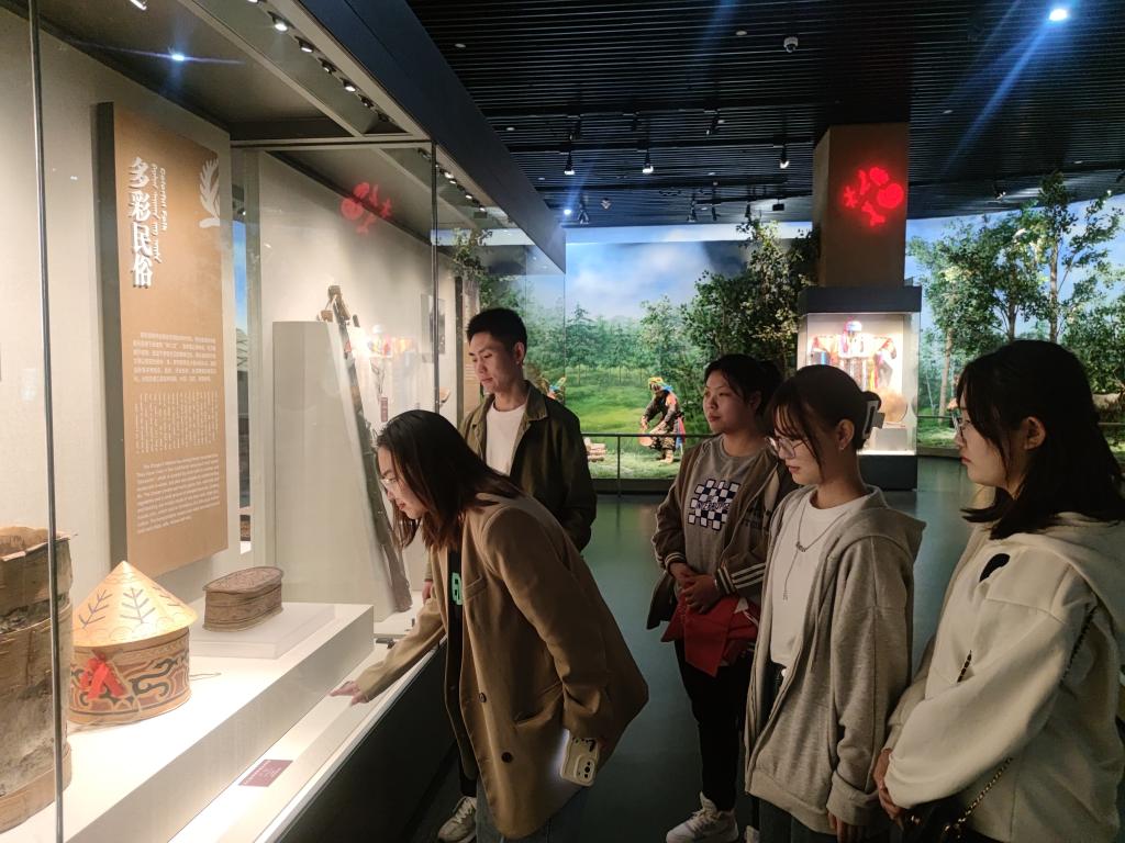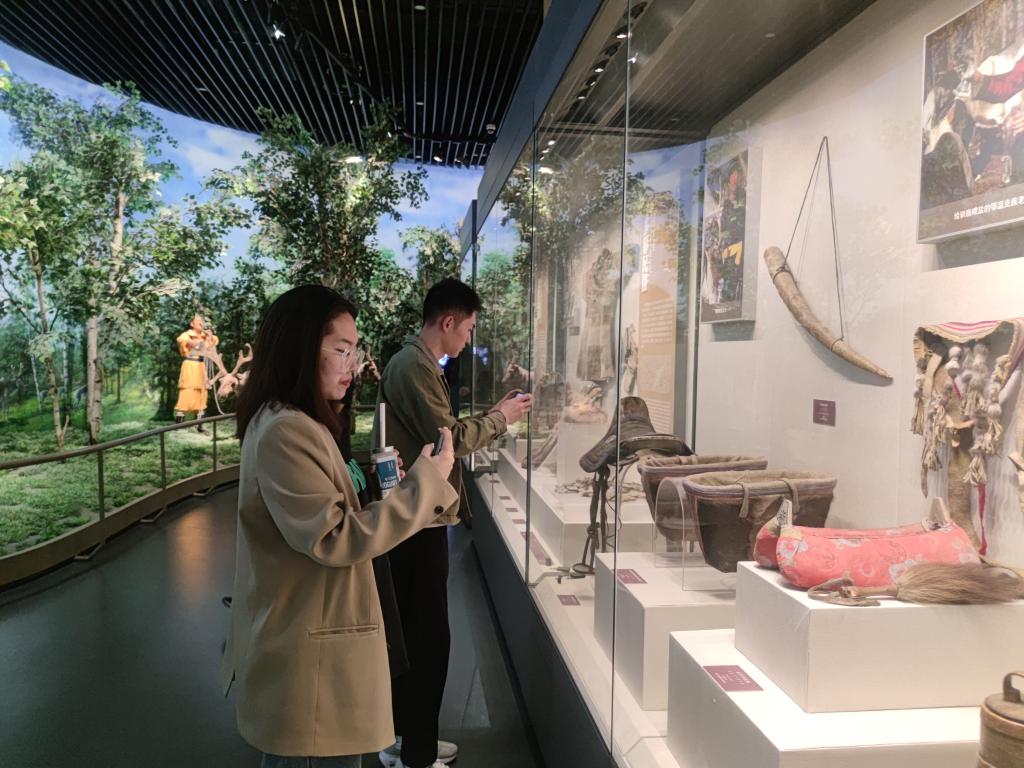 “民艺承袭”团队深入参观了内蒙古博物院“北疆桦歌”展厅,通过实景还原景搭,多维信息介绍展板,手工艺品近景展示等展块,阅乡彩部落习俗,览民俗风情文化,见古老手工技艺,品文化发展历史,更加深入了解学习体验中华优秀传统文化北疆三少民族----达斡尔族、鄂温克族、鄂伦春族民俗风情和艺术文化,感受瑰丽中华民族优秀传统文化、历史成就和文化传承,引导青年学生深刻领悟党的领导、文化自信、坚定理想信念和历史使命。