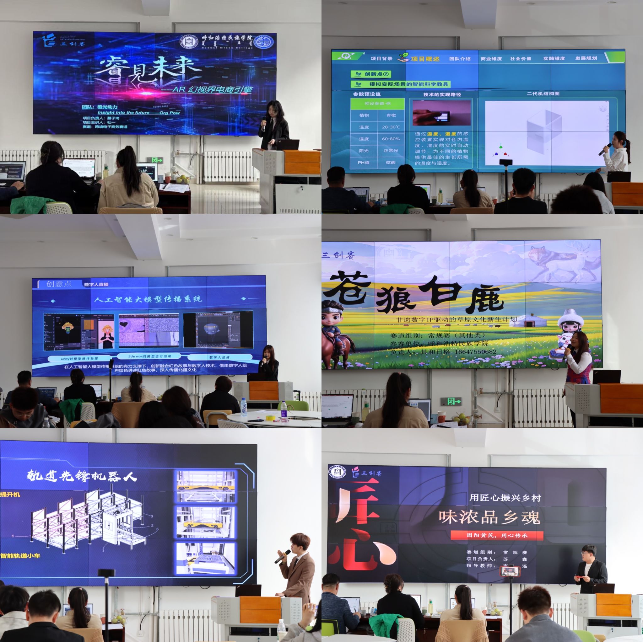 比赛现场,评委们根据参赛队伍的项目PPT展示、参赛选手对项目的讲解以及项目团队答辩环节的表现,从项目可行性、技术创新性、社会价值等多个维度,对参赛项目进行严格评审。并详细提问和点评,为参赛团队提供了宝贵的建议和启示。