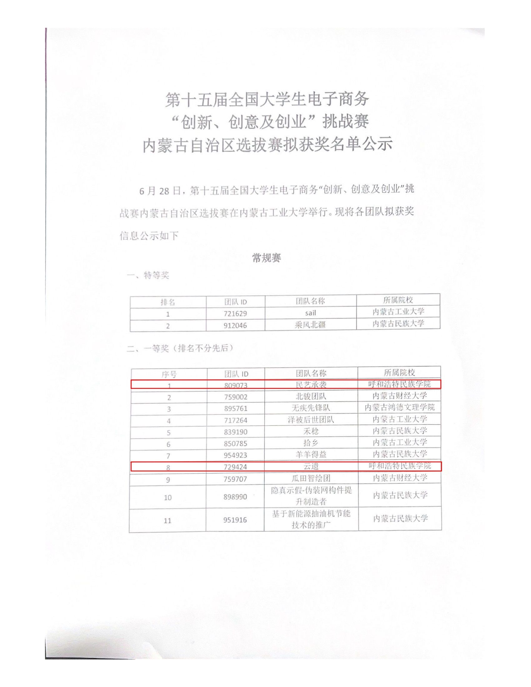 经过校内选拔赛的激烈竞争,并结合省赛组委会的名额分配,米乐官网共有4支队伍成功晋级省赛,其中常规赛的《民艺承袭》团队进一步晋级至终极赛。最终《苇航绿途》团队荣获乡村振兴实战赛省级一等奖;《民艺承袭》、《云遗》两个团队荣获常规赛省级一等奖;《智链创运》团队荣获常规赛省级二等奖;哈斯同力嘎、庄晓岩、陈玉珍、迎梅等四名教师荣获省优秀指导老师奖。