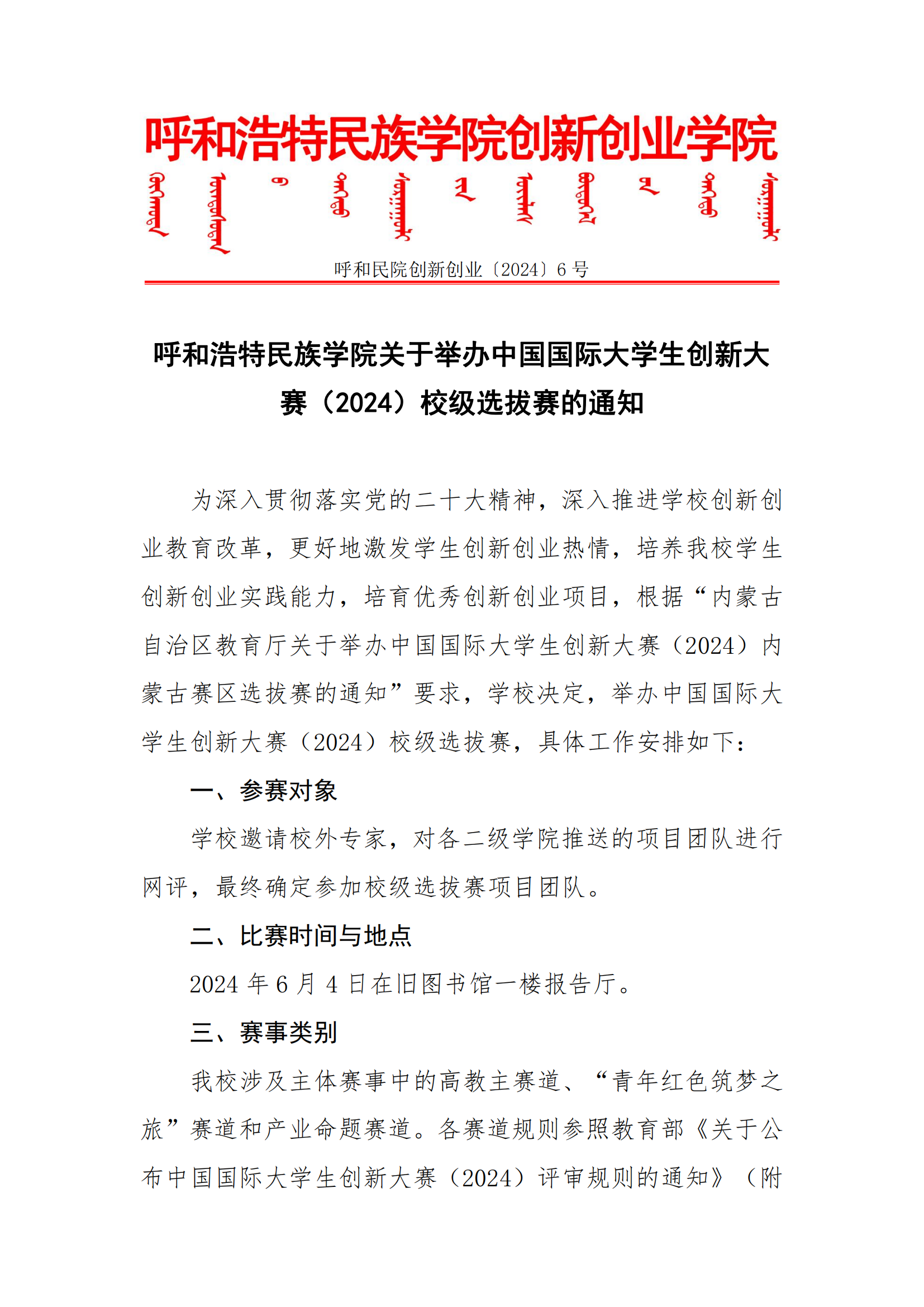 MILE米乐集团关于举办中国国际大学生创新大赛(2024)校级选拔赛的通知