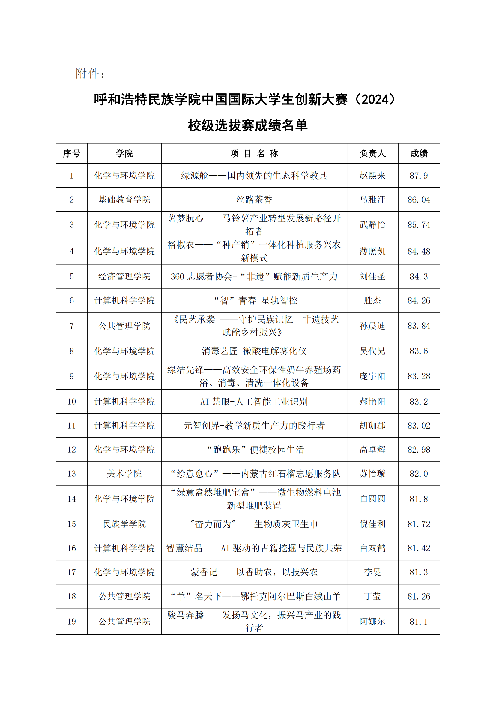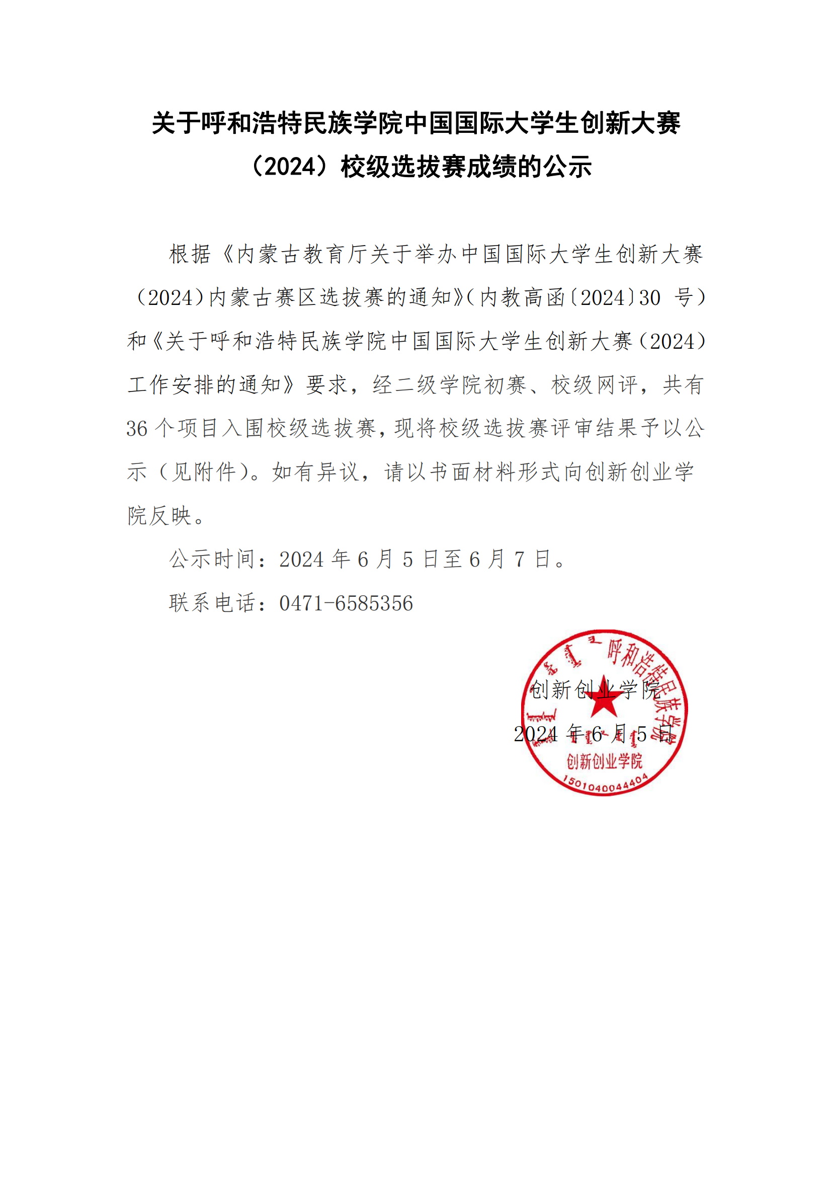 关于MILE米乐集团中国国际大学生创新大赛(2024)校级选拔赛成绩的公示