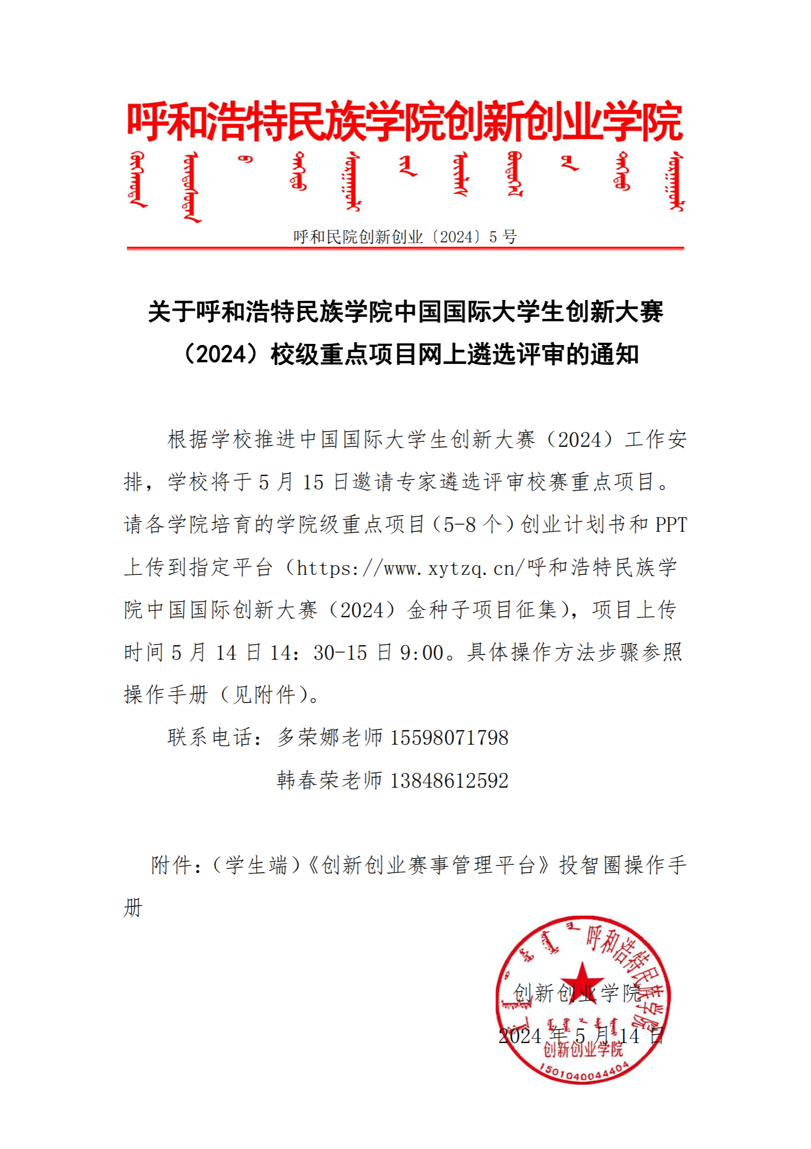 关于MILE米乐集团中国国际大学生创新大赛(2024)校级重点项目网上遴选评审的通知