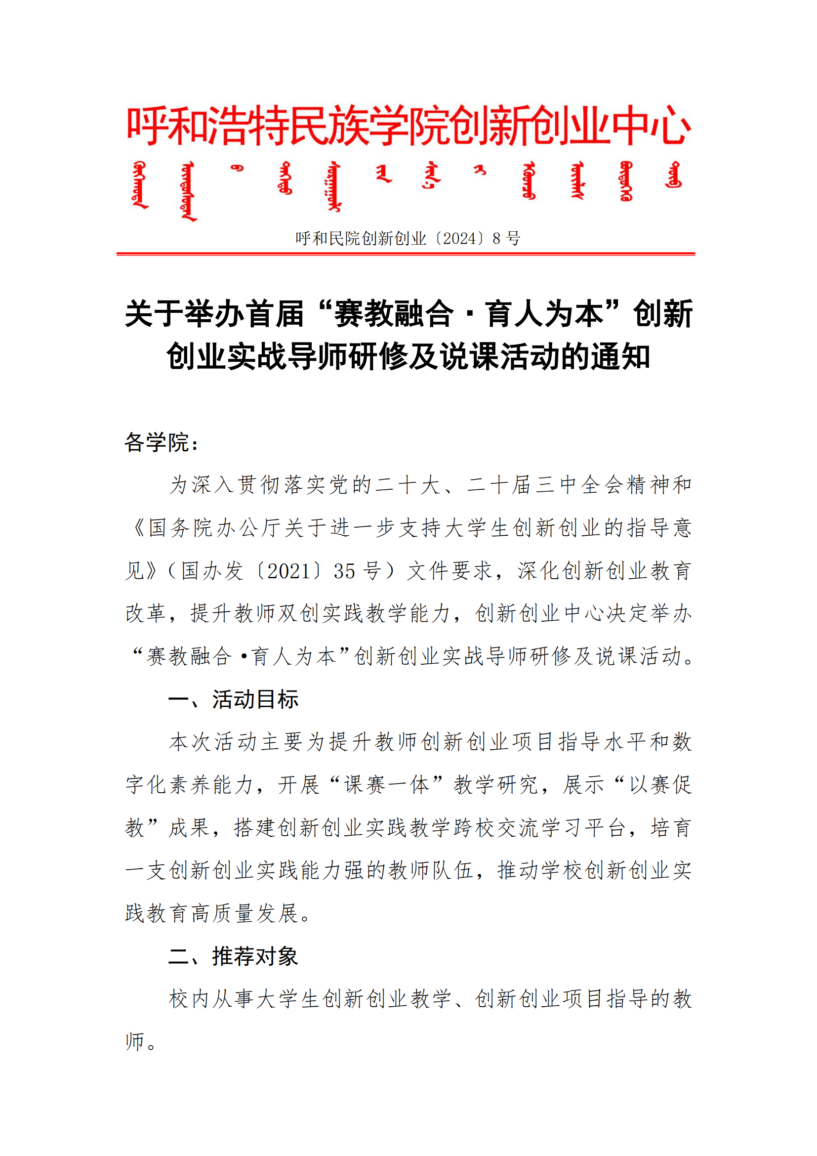 关于举办首届“赛教融合·育人为本”创新创业实战导师研修及说课活动的通知