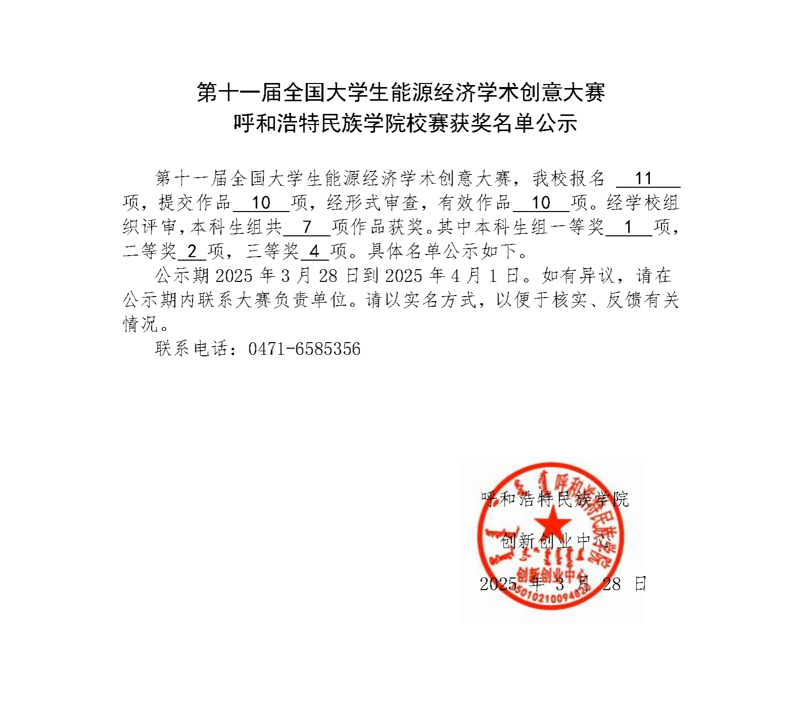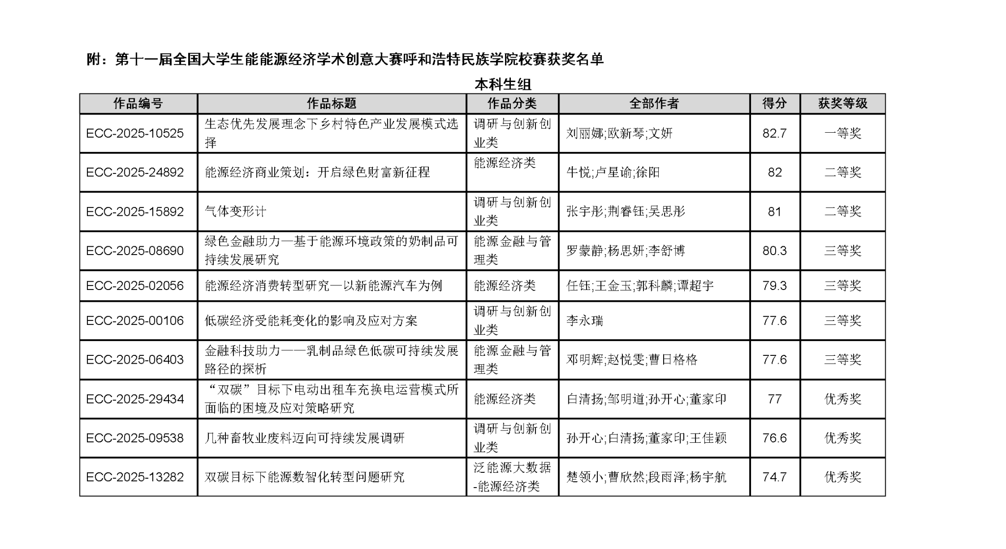 第十一届全国大学生能源经济学术创意大赛MILE米乐集团校赛获奖名单公示