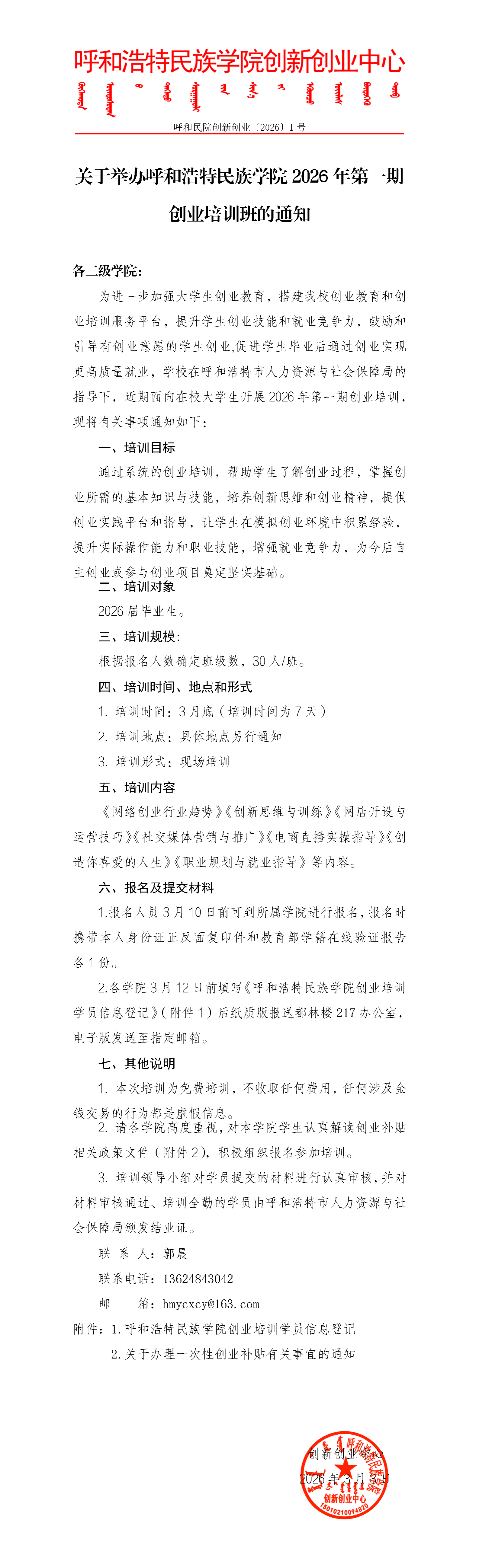 关于举办MILE米乐集团2026年第一期创业培训班的通知