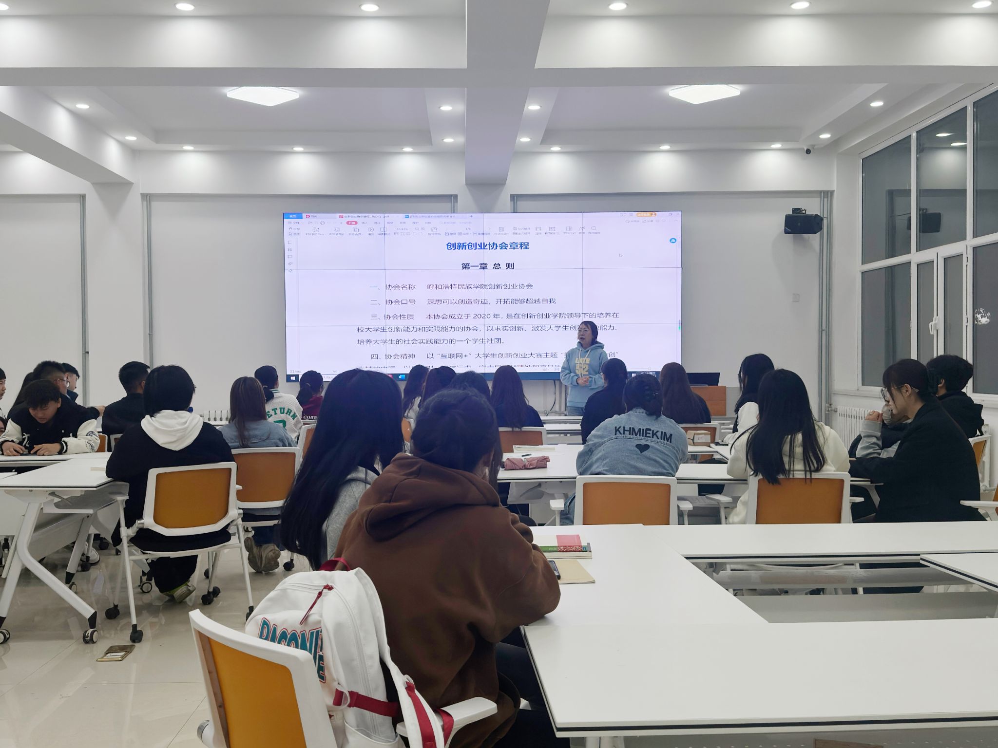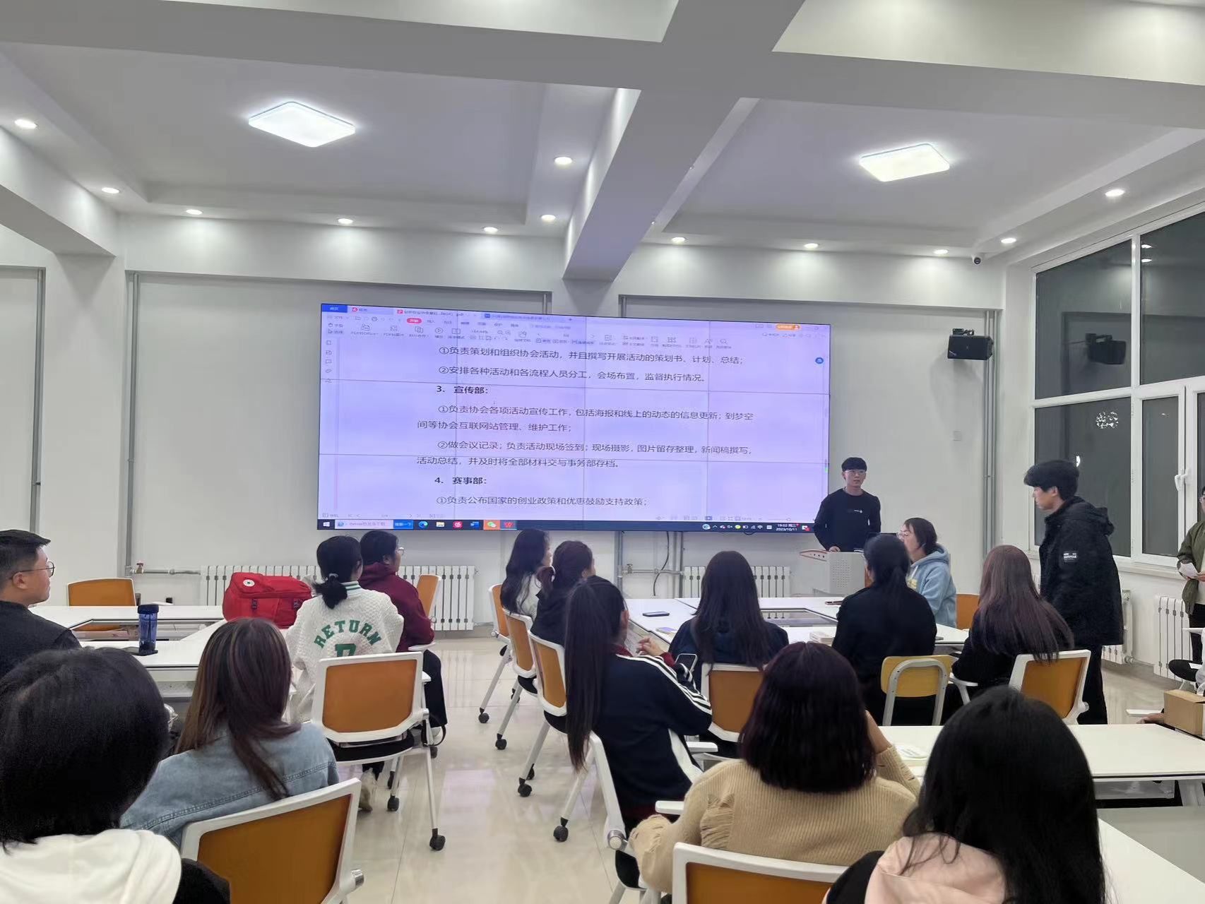 2023年10月12日下午,米乐官网大学生创新创业协会在创业楼101举办了纳新换届全体大会。本次大会有创新创业学院实训部主任多荣娜老师、协会会长、各部门部长和协会全体成员共40余人参加。