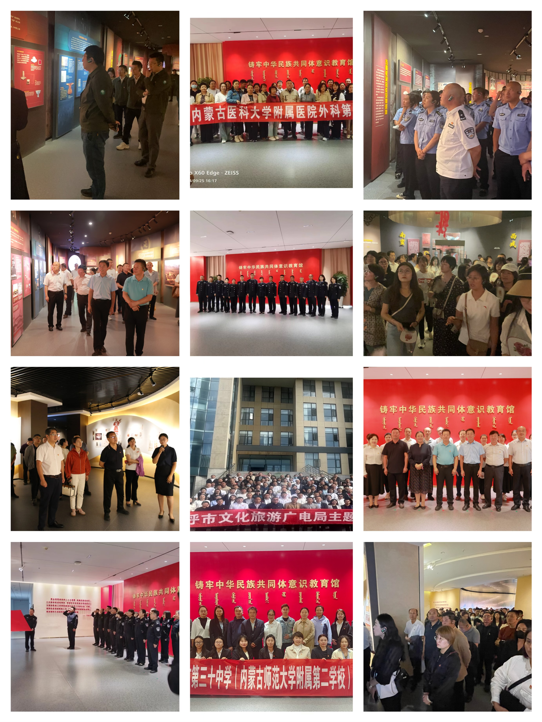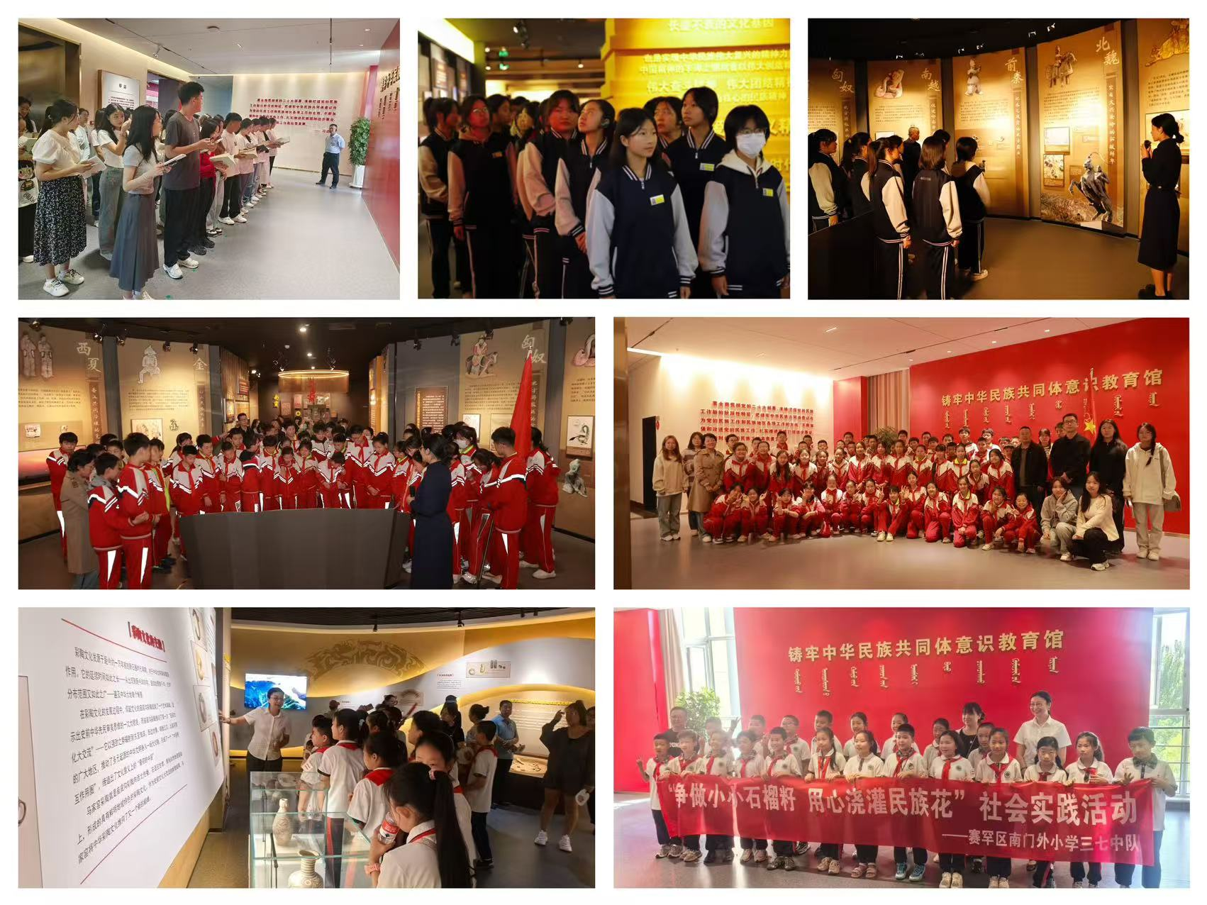教育馆以秋季入学为契机,积极探索“馆课一体、馆教一体、馆研一体”融合。安排《中华民族共同体概论》《中国近现代史纲要》《中国共产党历史》《中国文化概论》在馆内开展实践教学,同时开展入学教育、入职教育、师生党团日、班会等活动,打造“行走的思政课”。坚持大中小学联学联研、校地联建联动,呼市商贸旅游职业学校、北垣街小学等大中小学先后来馆开展研学,内蒙古自然资源厅、内蒙古住建厅、内蒙古人社厅、内蒙古公安厅、内蒙古司法厅来馆等单位到馆开展党日活动。进一步优化展陈内容,以《中华民族共同体概论》为大纲,契合教材相同教学点110余处、相同教学图片10余幅,有效阐释中华民族共同体形成与发展的历史、中华民族共同体建设与中华民族现代文明、与中国式现代化等重要内容,推进学校铸牢中华民族共同体意识教育与研究阵地建设。