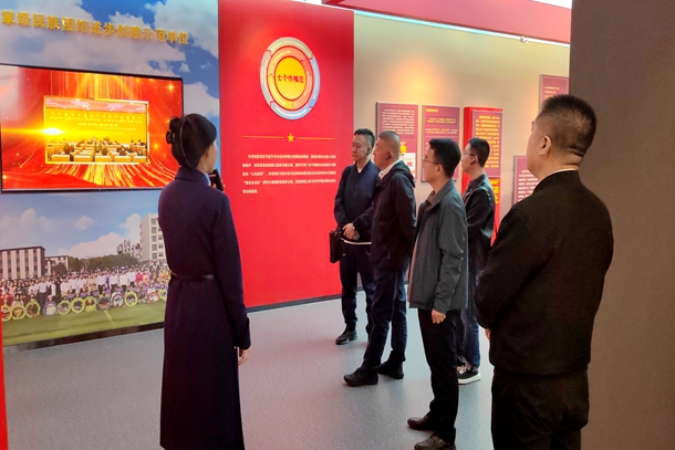 吴凯一行参观了学校铸牢中华民族共同体意识教育馆、非遗展馆和校史馆,并就调研目的展开交流。