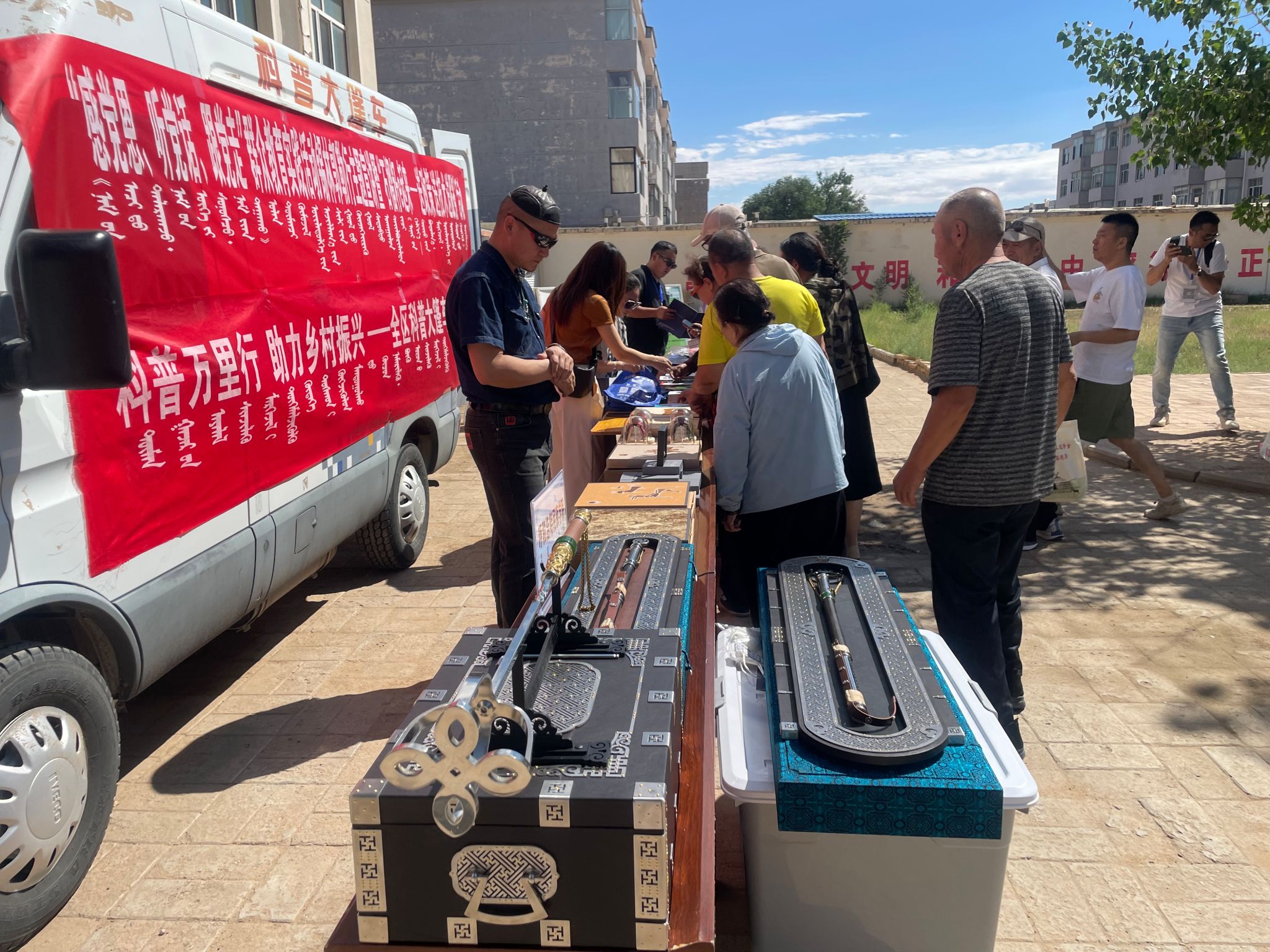 为聚焦聚力好完成习近平总书记交给内蒙古的五大任务和全方位建设模范自治区两件大事,有形有感有效讲好中华民族共同体故事,发挥国家级民族团结进步示范学校的引领作用,推进学校“23456”民族团结进步创建工程进社区,7月17日,学校党委统战部、宣传部、美术与设计学院师生赴锡林郭勒盟苏尼特右旗参加由自治区民委主办的“感党恩、听党话、跟党走”群众教育实践活动基层行主题宣讲暨“石榴籽e起来——送政策送技术送服务”活动。
