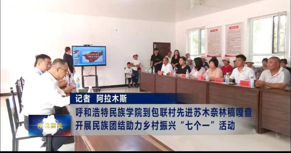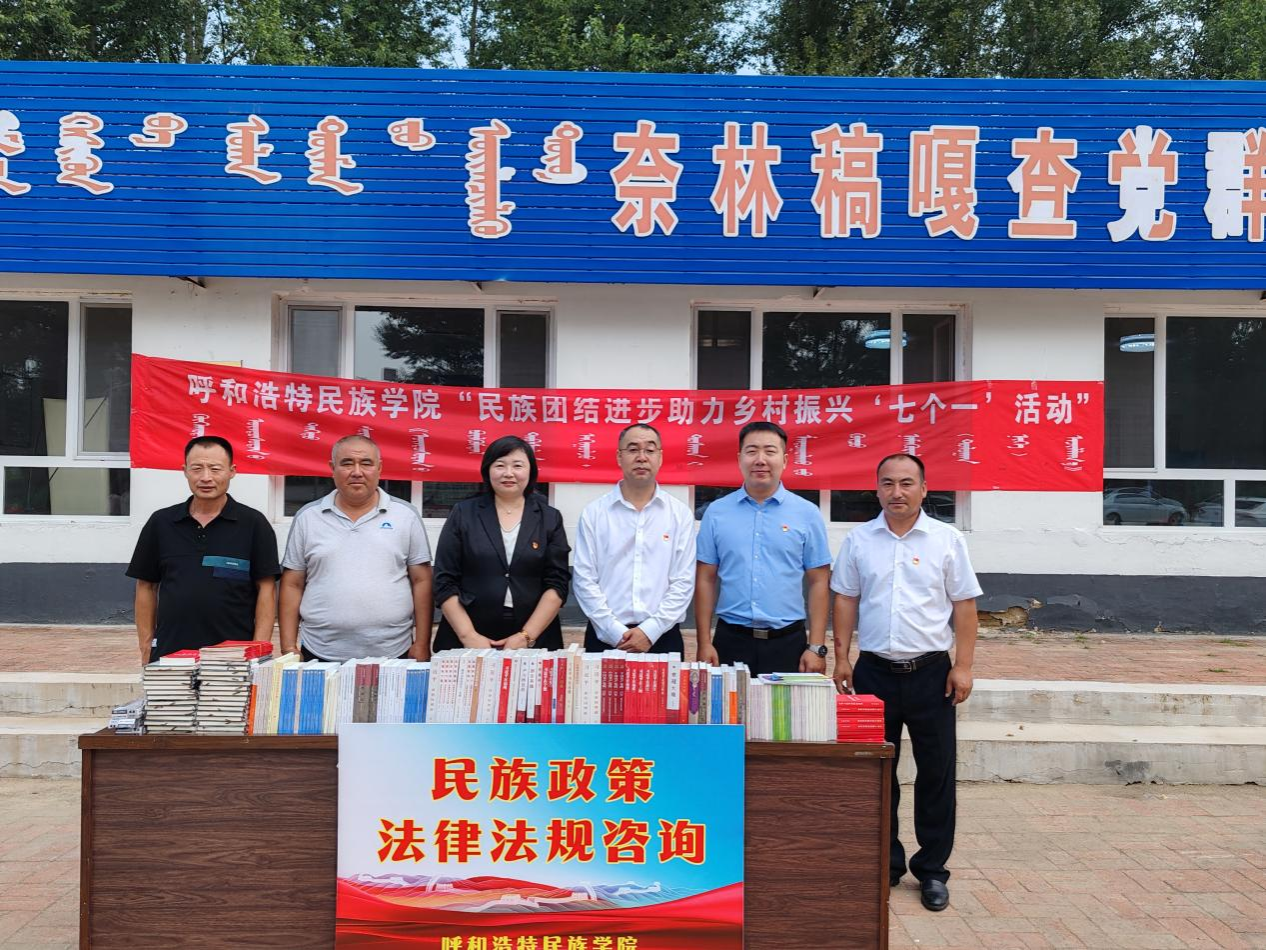 为深入宣传贯彻党的民族政策法制,推进学校“23456”民族团结进步创建进乡村工作,7月12日,学校党委统战部联合文学院、法学院、朝聚眼科医院,深入乡村振兴联系点通辽市库伦旗先进苏木奈林稿嘎查,开展“民族团结进步助力乡村振兴‘七个一’活动”。学校驻村第一书记、先进苏木班子全体成员、嘎查“两委”成员、嘎查群众、“北疆小红马”大学生讲解员参加活动。