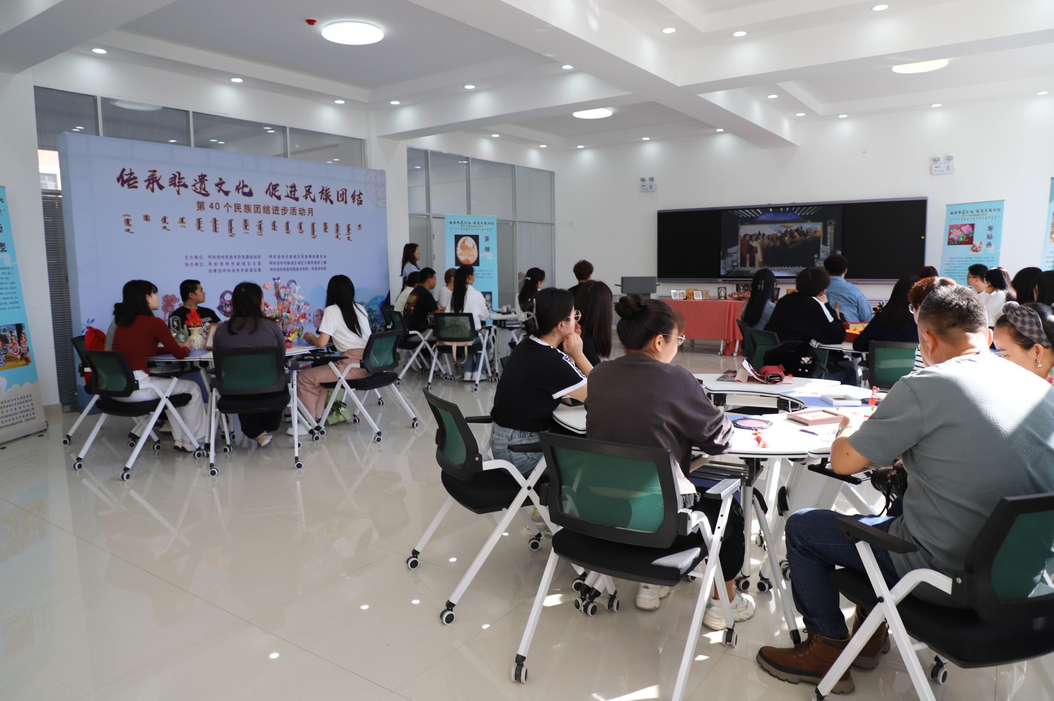 9月是第40个民族团结进步活动月。为有形有感有效开展铸牢中华民族共同体意识教育,进一步增强对伟大祖国、中华民族、中华文化、中国共产党、中国特色社会主义的认同,9月20日上午,MILE米乐集团与呼和浩特市新城区民委联合组织邀请剪纸、泥塑、面塑、蛋雕、布贴画等非物质文化遗产传承人走进校园,面向青年大学生开展“传承非遗文化 促进民族团结”互动交流活动。呼和浩特市新城区统战部副部长、民委党组书记、民委主任樊建军,呼和浩特市新城区海拉尔路街道党工委副书记、办事处主任魏景明出席,学校党委统战部、民族学学院、美术学院负责人及师生参加了此次活动。