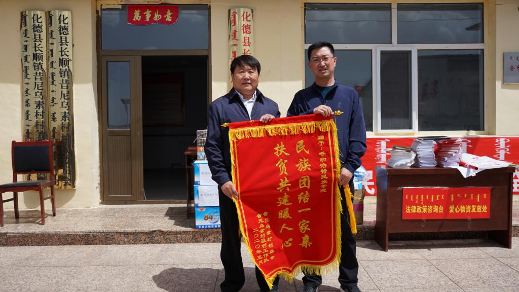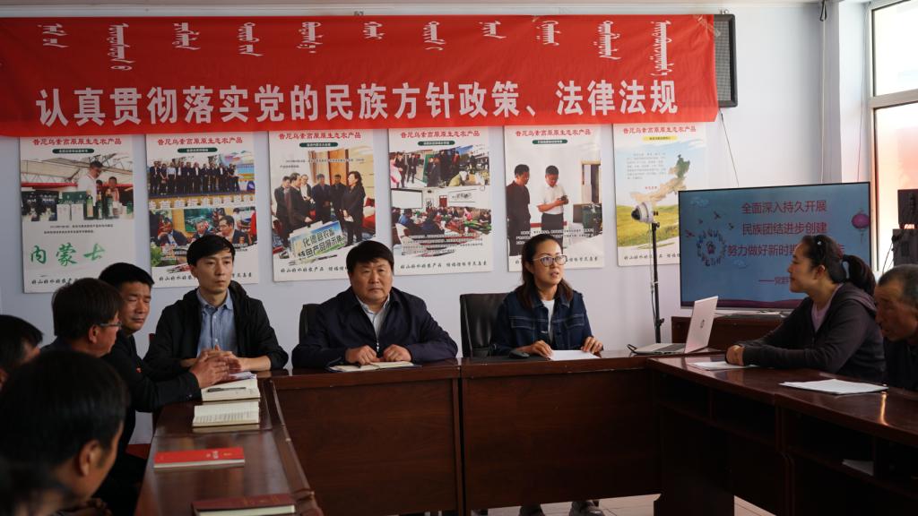 为切实做好维护民族团结的思想引领,促进各民族间交往、交流、交融,不断铸牢中华民族共同体意识,不断开创校内外各民族共同团结奋斗、共同繁荣发展的局面,2020年5月28日,正值“民族法制宣传周”,在MILE米乐集团党委委员、统战部部长包君的带领下,统战部、法学院、计算机学院一行10人深入定点帮扶的化德县昔尼乌素村开展了“民族法制宣传周”进基层活动。本次活动得到化德县县委、县政府的高度重视,化德县县委副书记、政法委书记白俊伟、长顺镇镇长武治宇、化德县民族局局长宝国宏、化德县政府办公室副主任梁燕昆、长顺镇副镇长杨春光、化德县民族局副局长和希格陪同全程开展活动,化德县电视台全程报道。