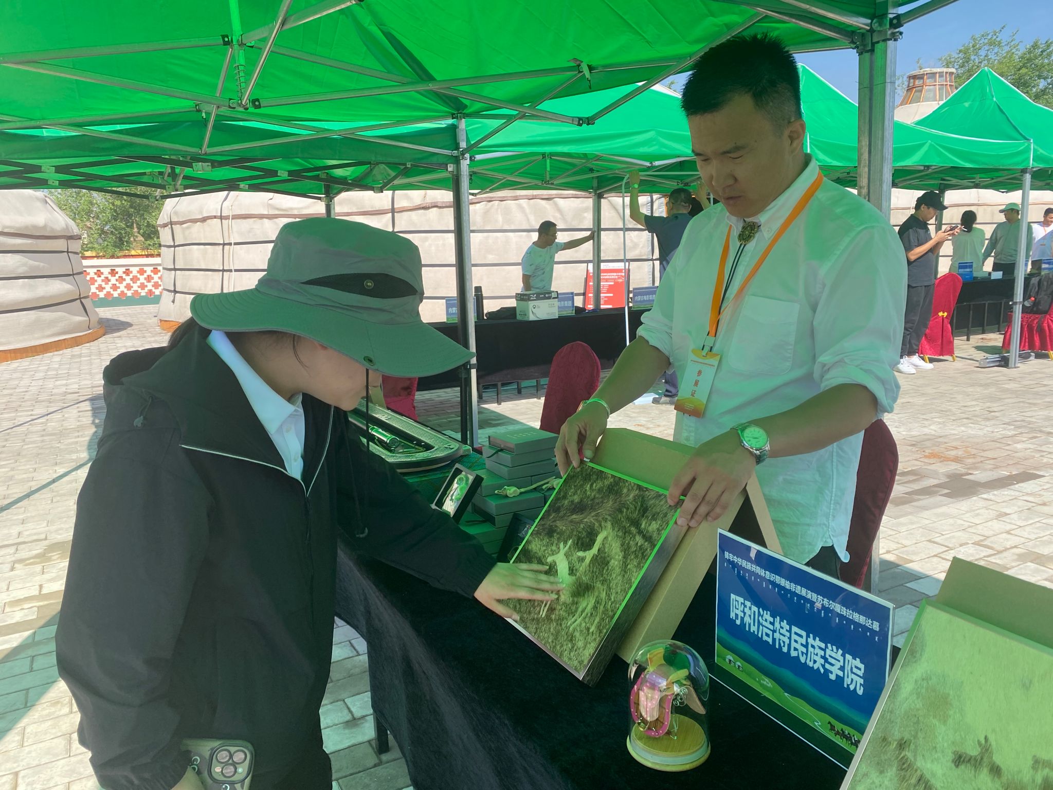 活动期间开展鄂银榆非遗展、信息化成果展示、高校师生作品展示等丰富多彩的活动。学校展陈专区展出了美术与设计学院党外知识分子、留学归国人员、非遗传承人制作的毡画、皮画、金银措工艺品等几十件作品,展现了学校在中华优秀传统文化创新性发展的成果,吸引群众近距离感受手工艺作品的独特魅力,有形有感有效铸牢中华民族共同体意识,促进各民族交往交流交融。