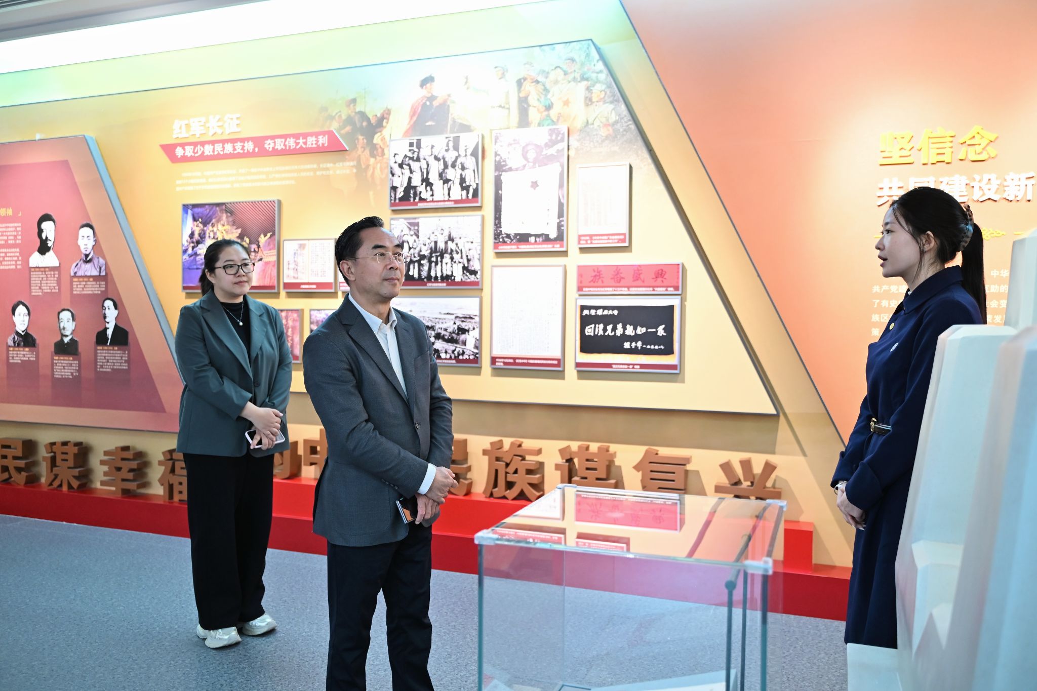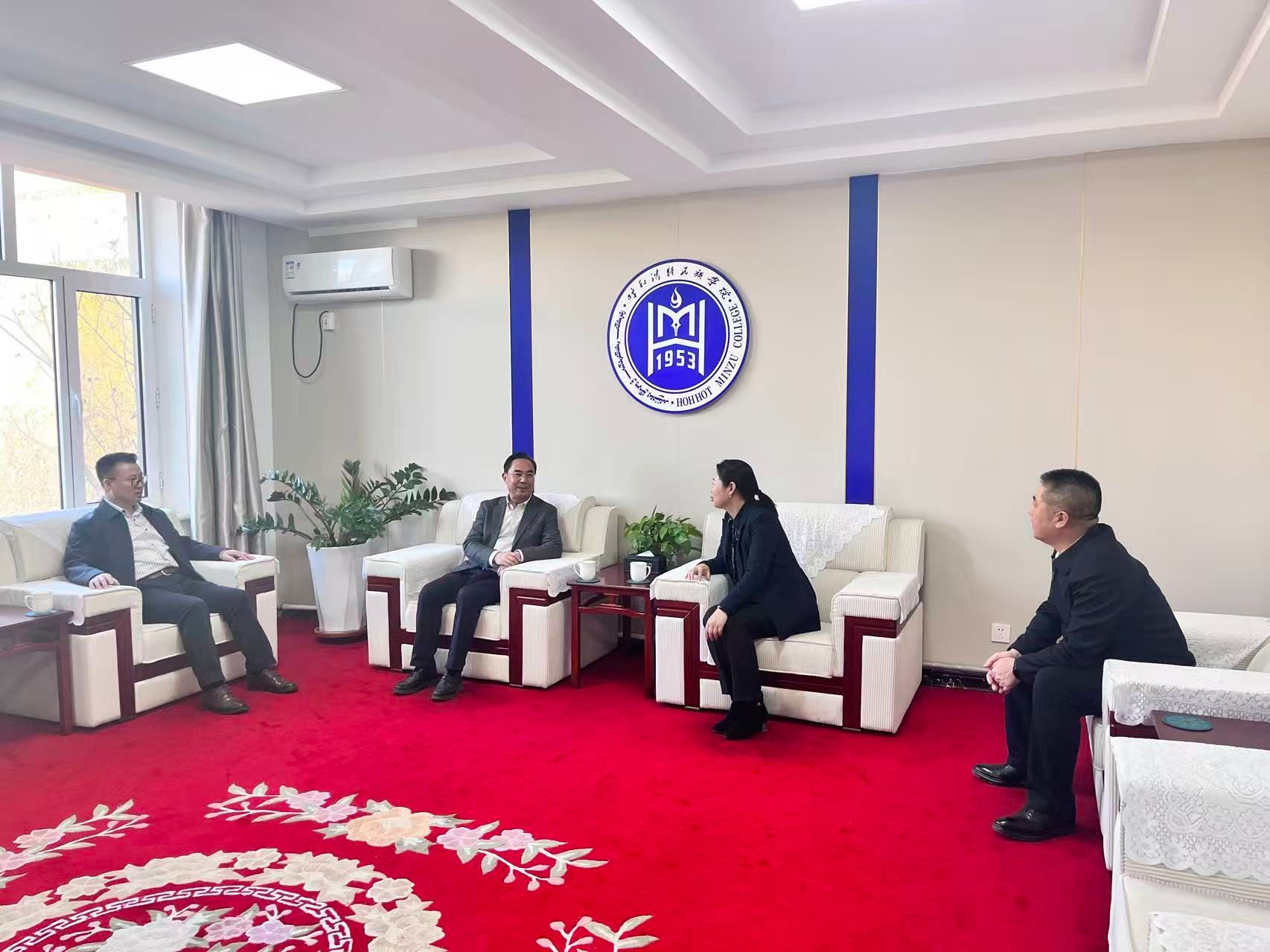 学校党委副书记格根哈斯,党委委员、副校长额尔敦布和在讲座前与刘宝明教授进行了交流,双方围绕深化中华民族共同体理论研究、加强民族相关学科建设、创新民族工作实践等方面进行深入探讨。