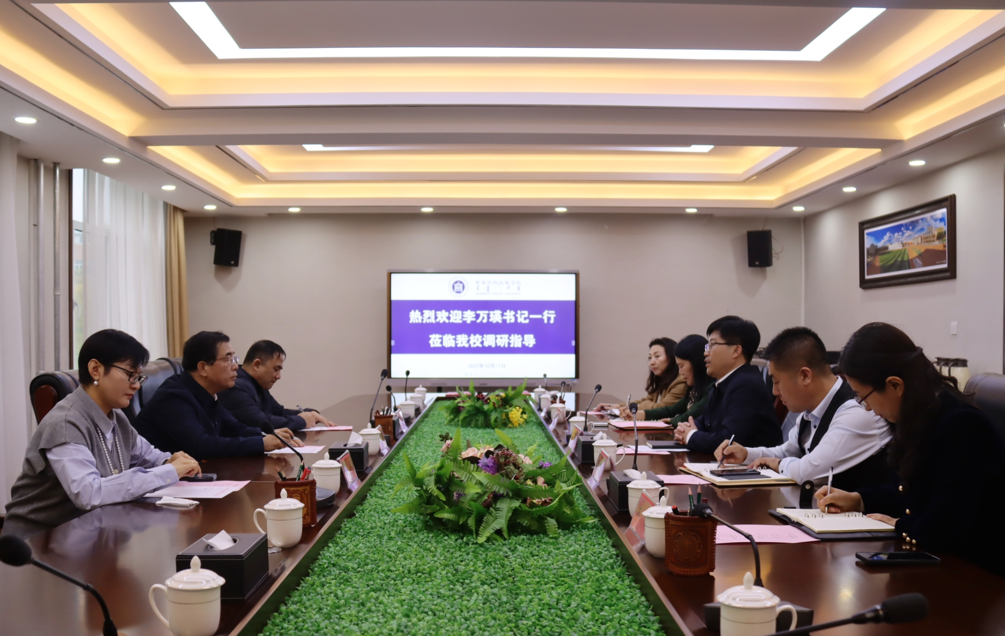 党政办、宣传部、科技处、对外合作与交流中心相关负责同志参加座谈。统战部、美术学院相关负责同志陪同参观调研。