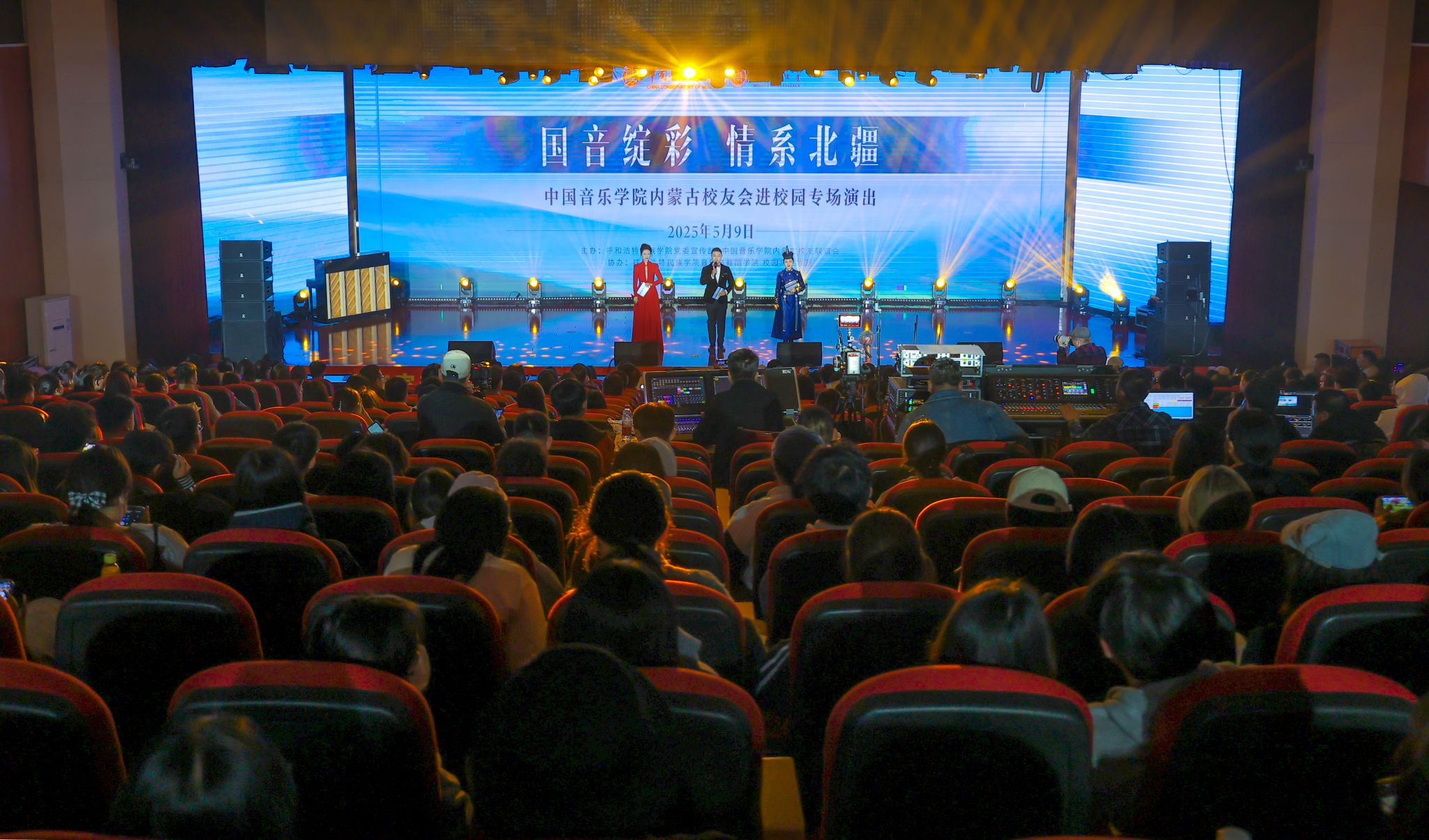 为深入贯彻自治区“六个行动”安排部署,全力推动区域合作深化行动、北疆文化建设提升行动,5月9日晚上,由米乐官网党委宣传部和中国音乐学院内蒙古校友共同主办,米乐官网音乐与舞蹈学院、校园乌兰牧骑协办的主题为“国音绽彩·情系北疆”中国音乐学院内蒙古校友会进校园专场演出在米乐官网圆满举行。中国音乐学院党委书记王旭东,内蒙古自治区文学艺术界联合会副主席海山,米乐官网党委副书记、校长王敏,党委委员、副校长高喜天,党委委员、副校长双虎以及区内艺术界知名专家学者、中国音乐学院内蒙古校友代表和米乐官网师生代表近600人观看演出。
